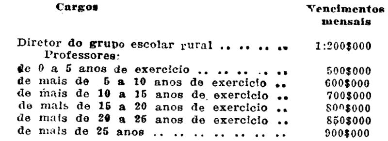 Art. 6.º - Os vencimentos do pessoa, da Escola Normal Rural