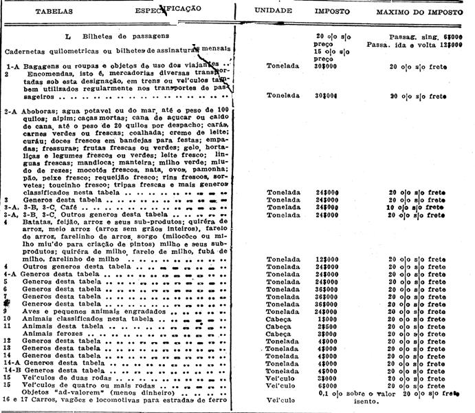 TABELA PARA A COBRANÇA DO IMPOSTO DE VIAÇÃO