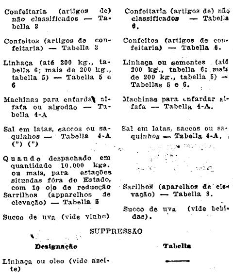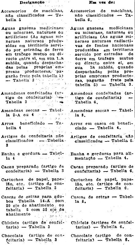 Aguas gazozas incdicinaes ou mineraes, naturaes ou artificiaes (As aguas mineraes naturaes produzidas em territorio servido por estradas de ferro em trafego mutuo ou directo entre si, em sua 1.a, sahida, quando despachadas pelas proprias emprezas productoras, pagarão frete pela tabella 50 - Tabella 3