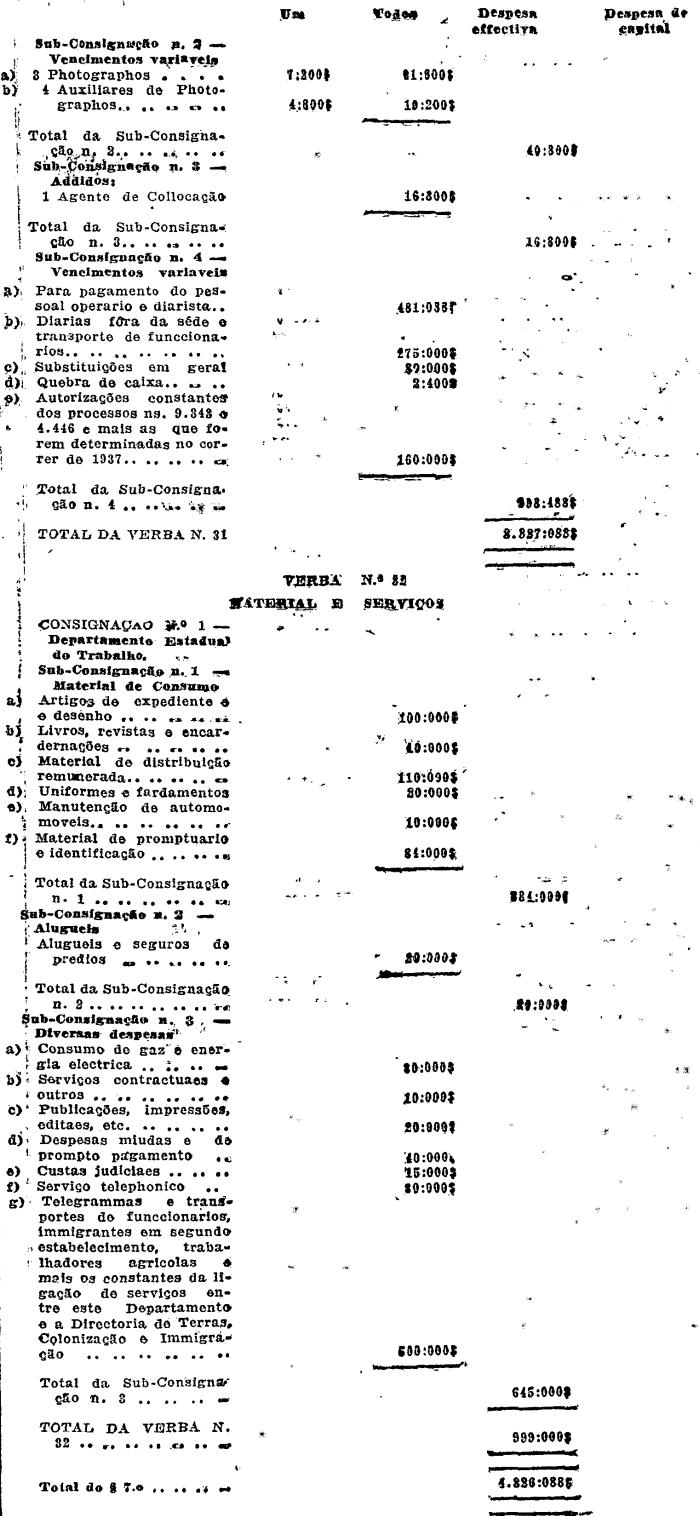 TABELLAS EXPLICATIVAS DA DESPESA DO ESTADO DE SÃO PAULO, PARA 1937, ANNEXAS AO DECRETO N. 8.058 DE 28 DE DEZEMBRO DE 1936