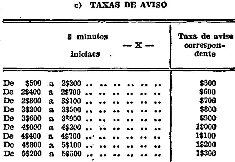 Approva a tabella de tarifas relativas aos serviços telephonicas