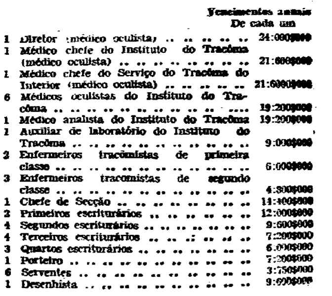 Artigo 4.º - Ao Diretor da Seccção do Tracôma com: