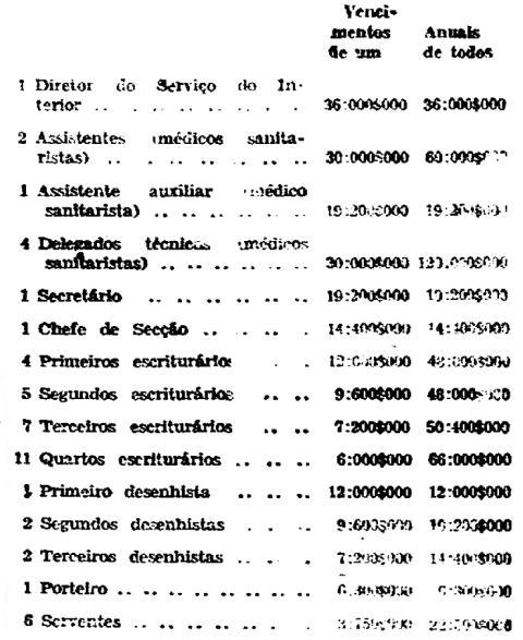 TABELA ANEXA AO DECRETO N. 9.341, DE 20 DE JULHO DE 1938 QUE ORGANIZA O SERVIÇO DO INTERIOR DO ESTADO