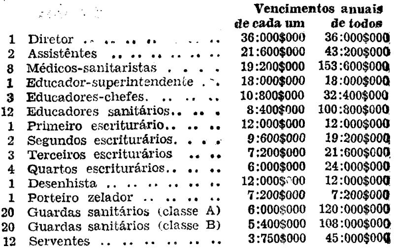 TABELA ANÉXA AO DECRETO N.9.357, DE 30 DE JULHO DE 1938, QUE ORGANIZA A SECÇÃO DE EPIDEMIOLOFIA E PROFILAXIA GERAIS