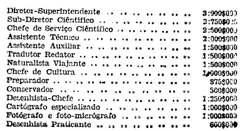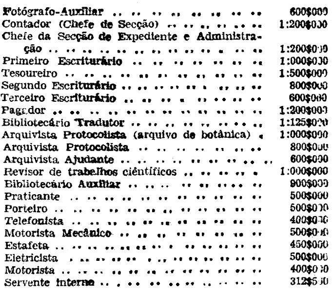 TABELA DE VENCIMENTOS MENSAIS DOS FUNCIONÁRIOS DO QUADRO DO DEPARTAMENTO DE BOTÂNICA DO ESTADO, A QUE SE REFÊRE O DECRETO N. 9.715, DE 9 DE NOVEMBRO DE 1938