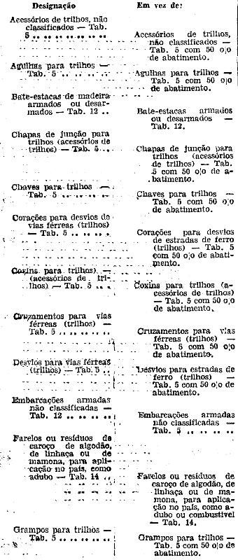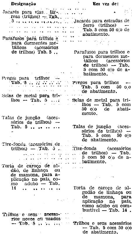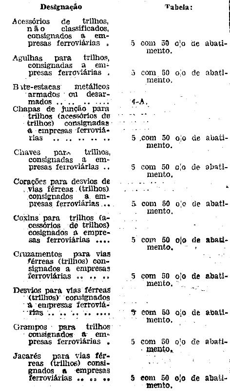 Artigo 1.º - Ficam os trilhos e acessórios excluidos