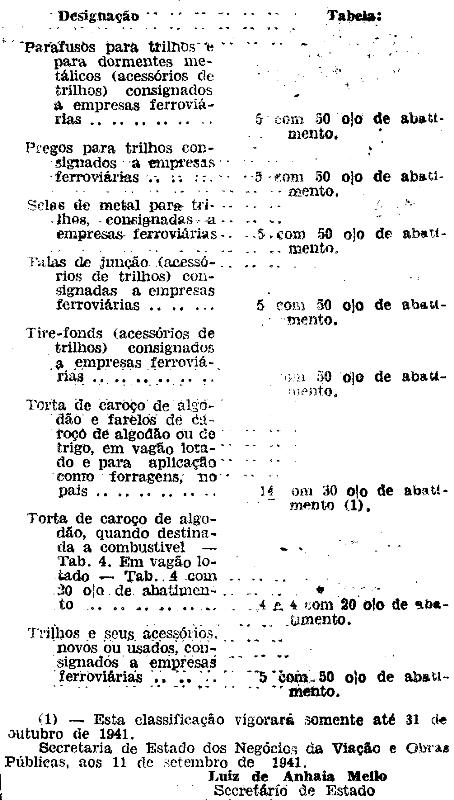 Secretaria de Estado dos Negócios da Viação e Obras Públicas, aos 11 de setembro de 1941.