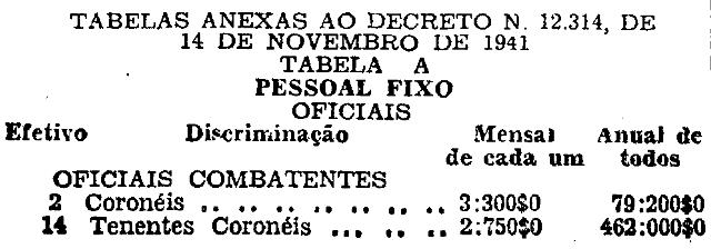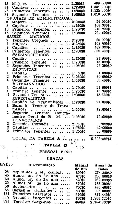 Artigo 8.º - Os vencimentos dos oficiais, praças e civis, são os constantes das tabelas anexas.