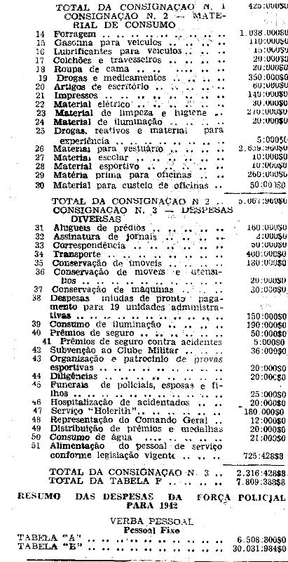 Artigo 1.º - A Força Policial do Estado de São Paulo será constituída, no exercício de 1942, de: