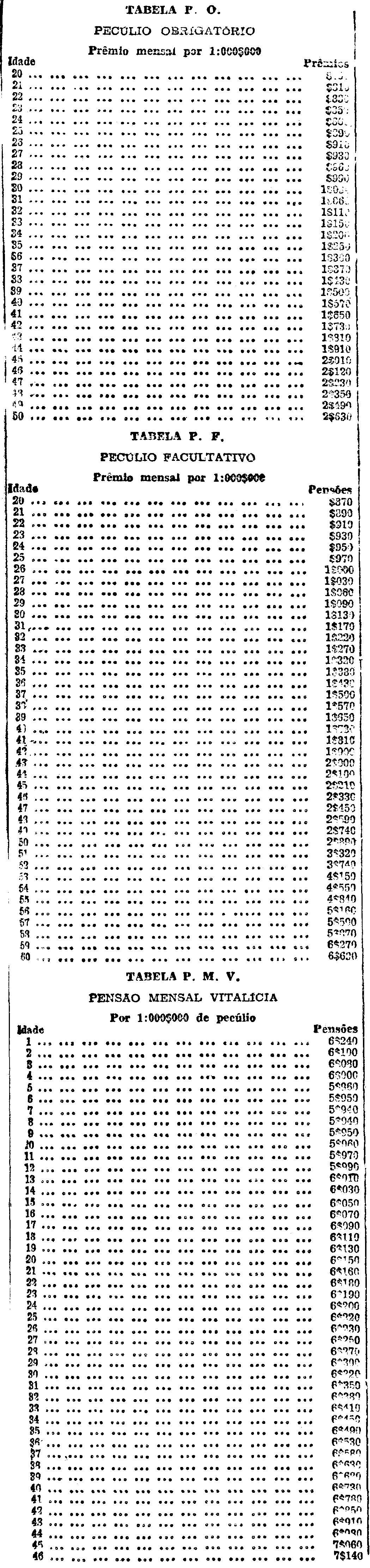 tabelas P. O. e P. F., que acompanham o presente regulamento;