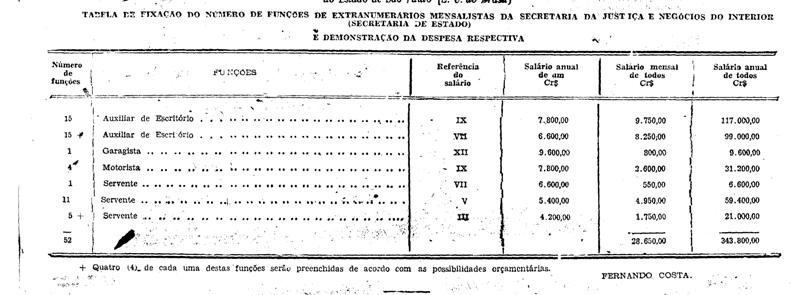 Secretaria da Justiça, de conformidade com a tabela anexa.