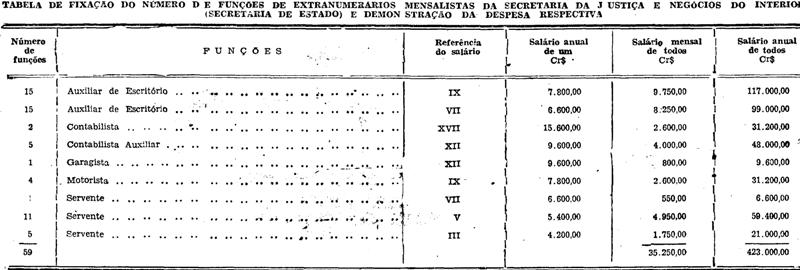 Cria funções na tabela baixada com o decreto n.14.476, de 18 de janeiro de 1945.