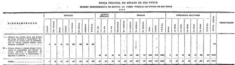 - Aprova os Quadros de Efetivo Orçamentário da Fôrça Policial do Estado, para o exercício de 1945.