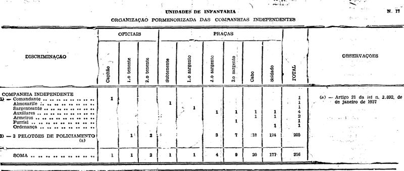 n.º 2892, de 13 de janeiro de 1937, e de acordo com o efetivo