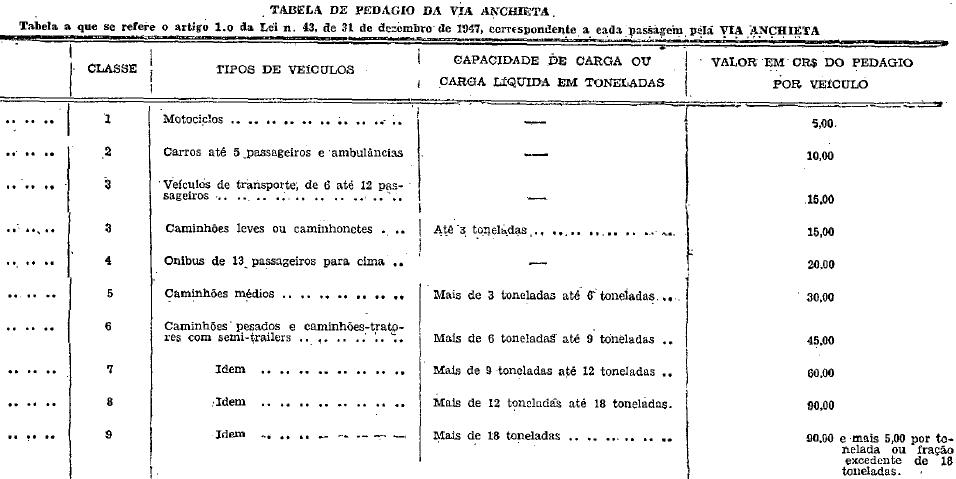pedágio, a que se refere a Lei n. 43, de 31 de dezembro de 1947.