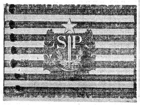 Artigo 2.° - A feitura do pavilhão governamental portanto, obedecerá o modelo anexo: em campo burelado de treze (13) peças de preto e prata (ou branco) o brazão do Estado de São Paulo