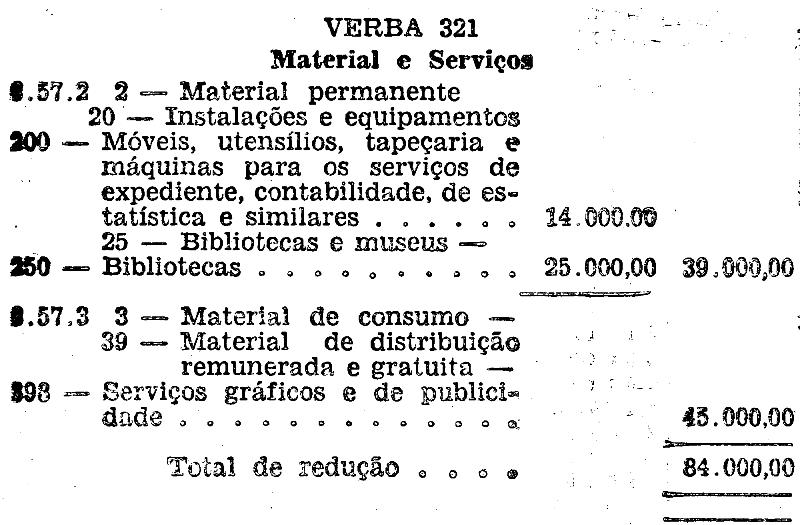 1.º - Ficam reduzidas, dentro dentro da verba 321 do