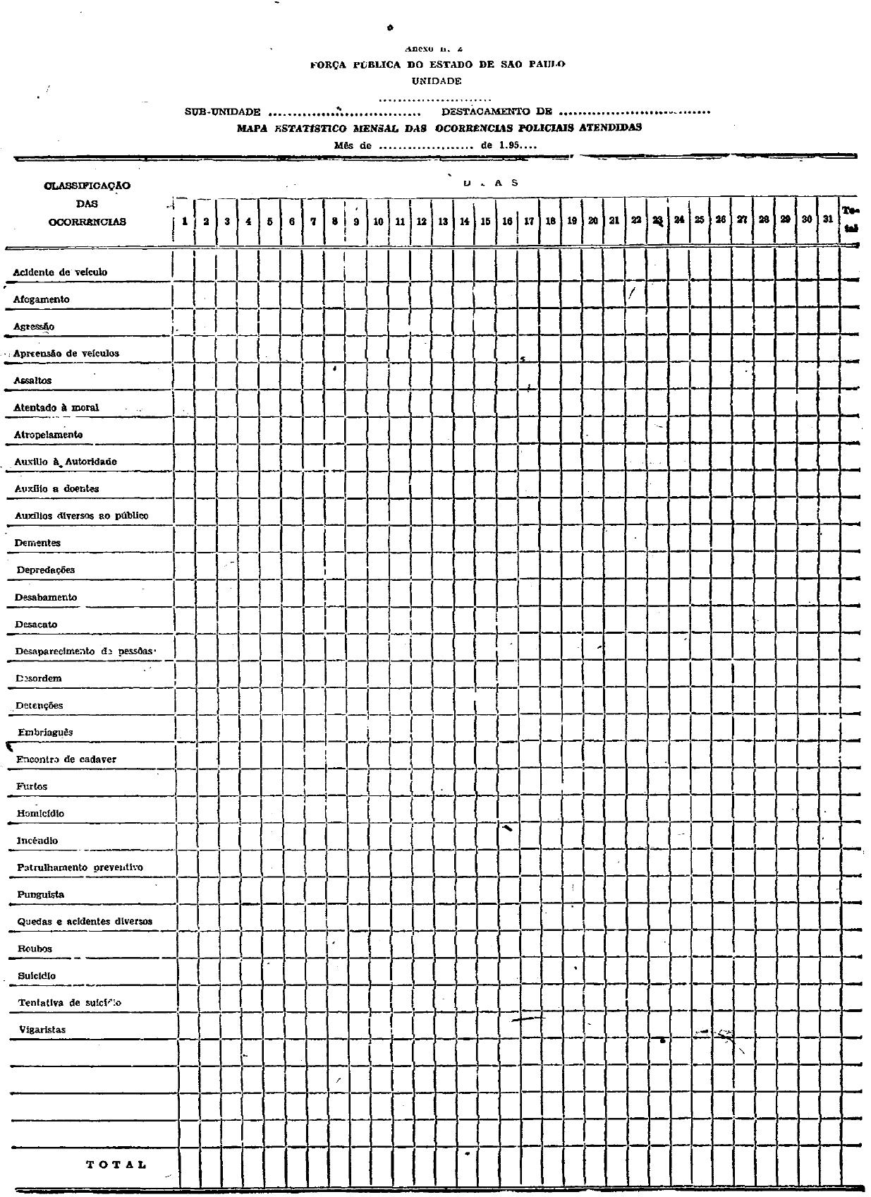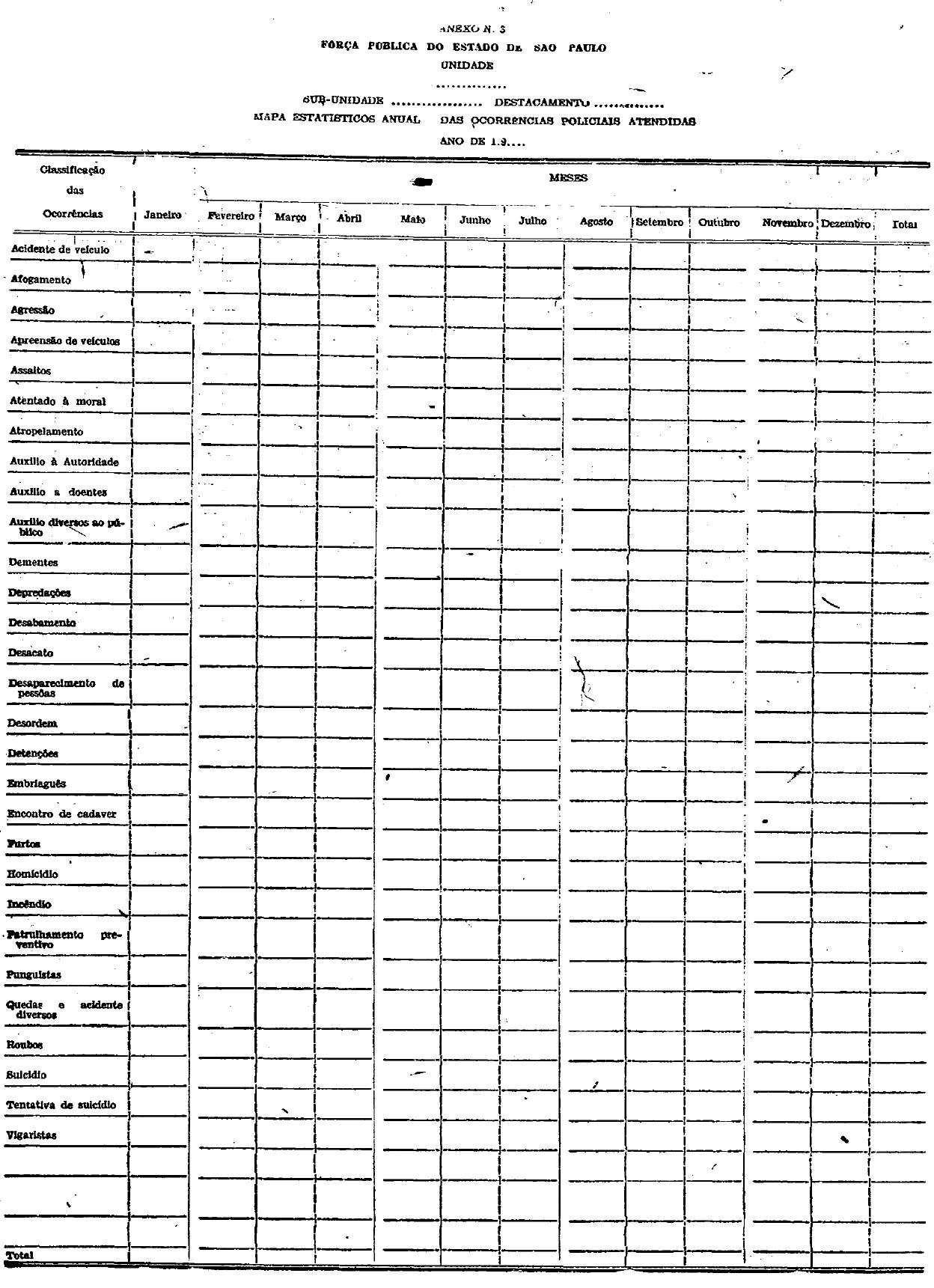 o efetivo e o material empregados por cada um no serviço de policiamento, bem