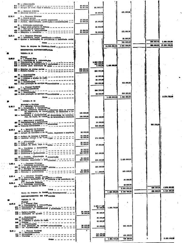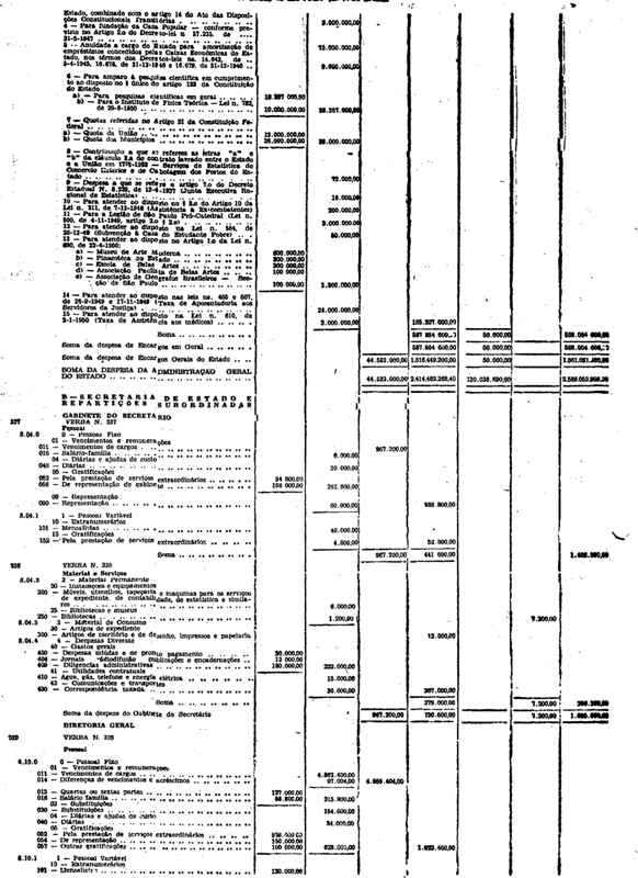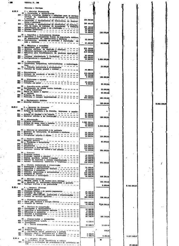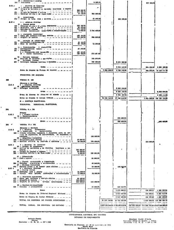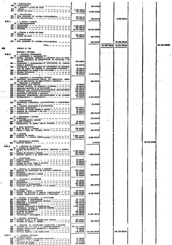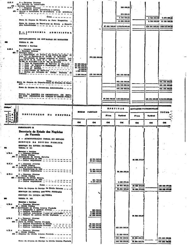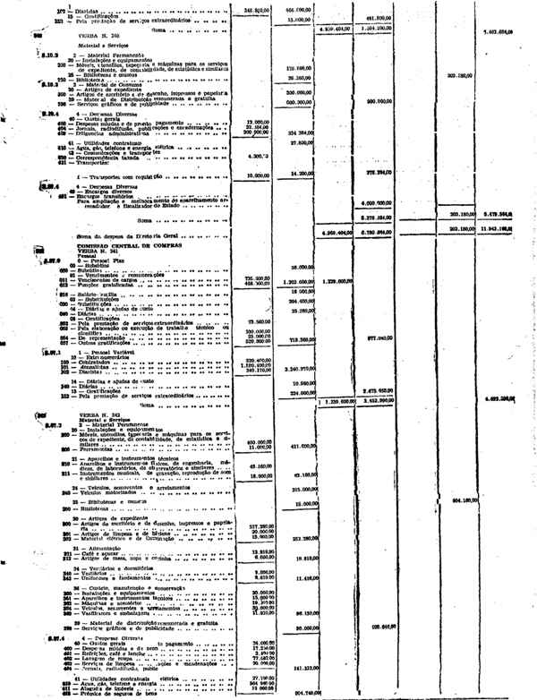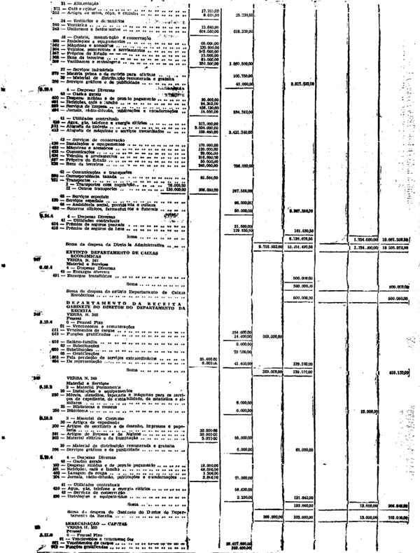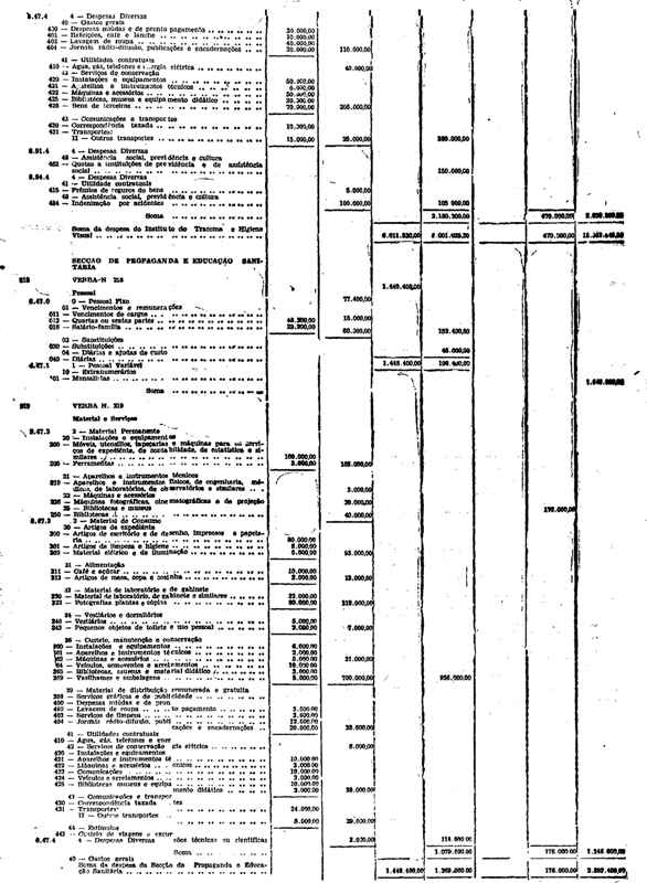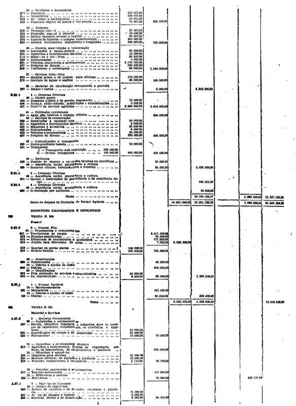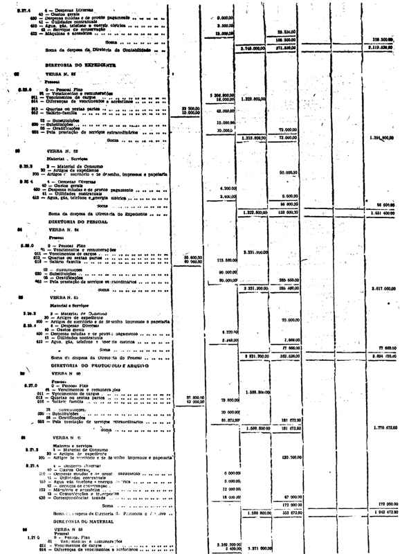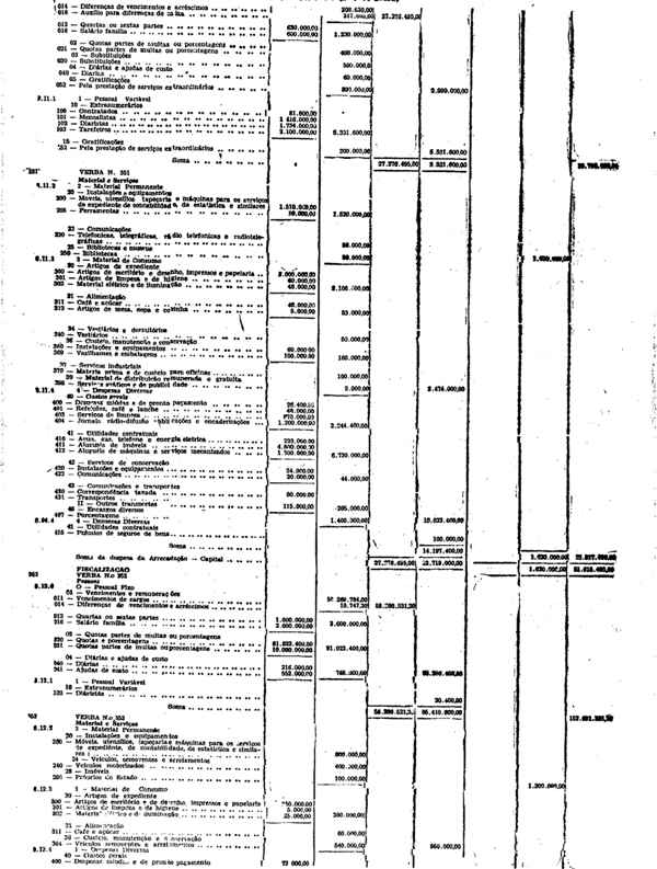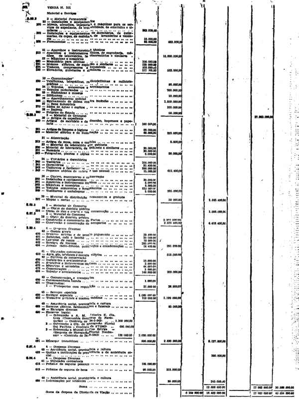 Novembro de 1951, a discriminação da Receita e da Despesa