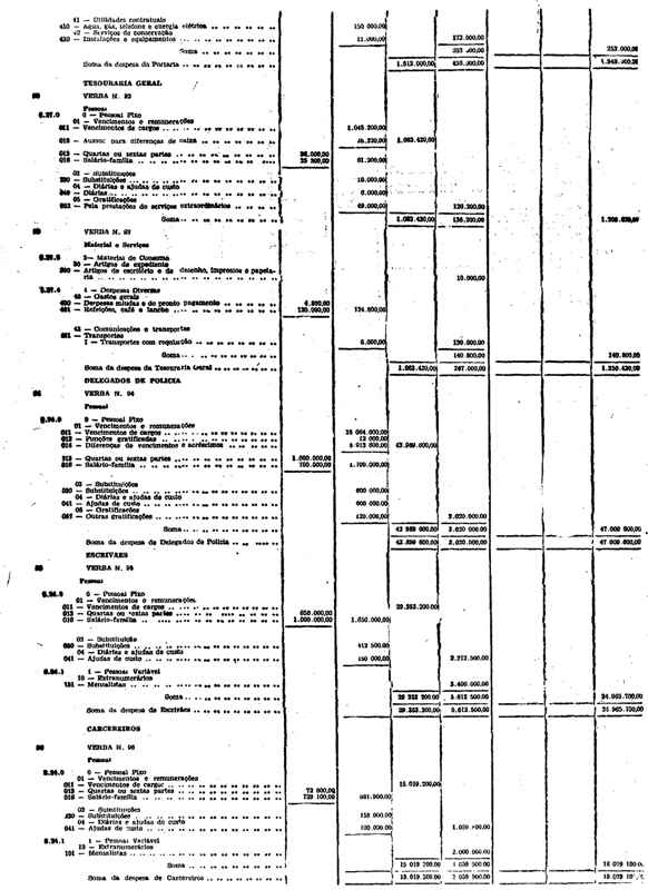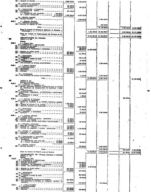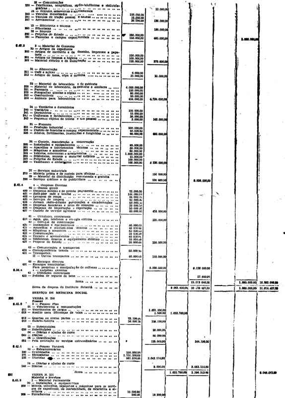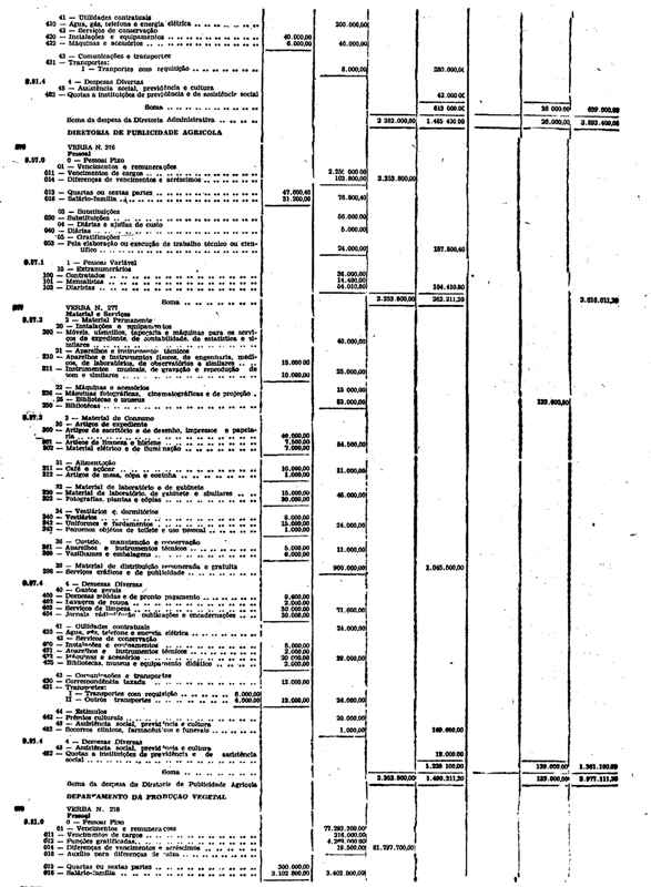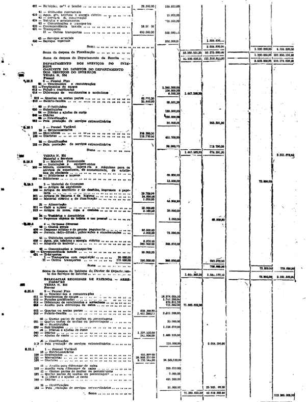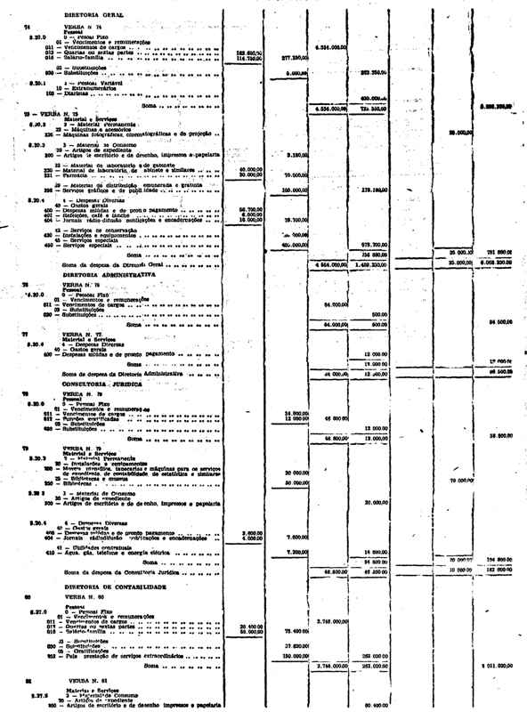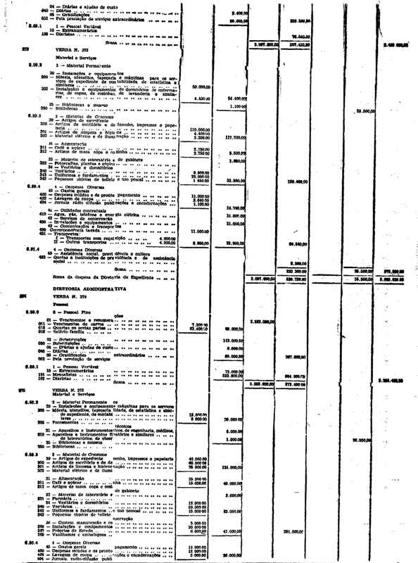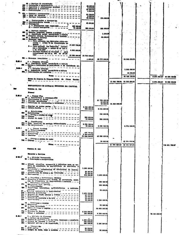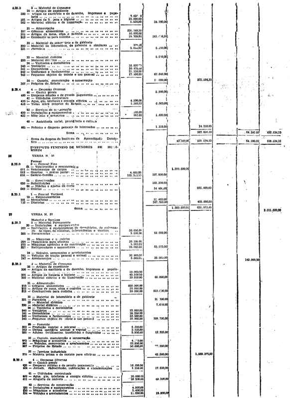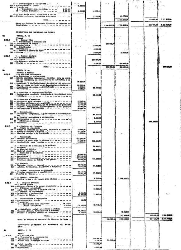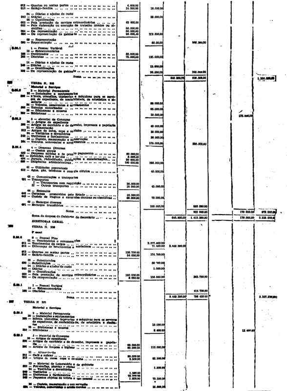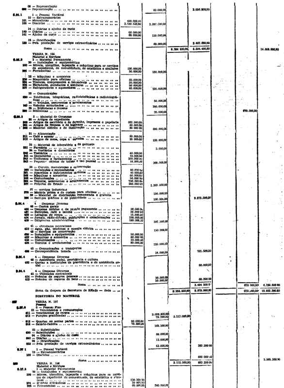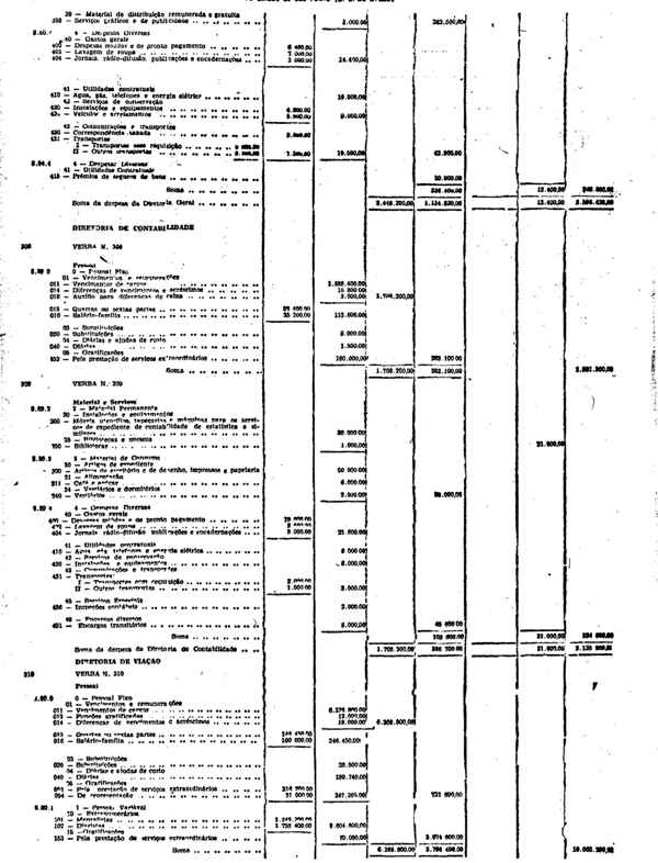 Novembro de 1951, a discriminação da Receita e da Despesa