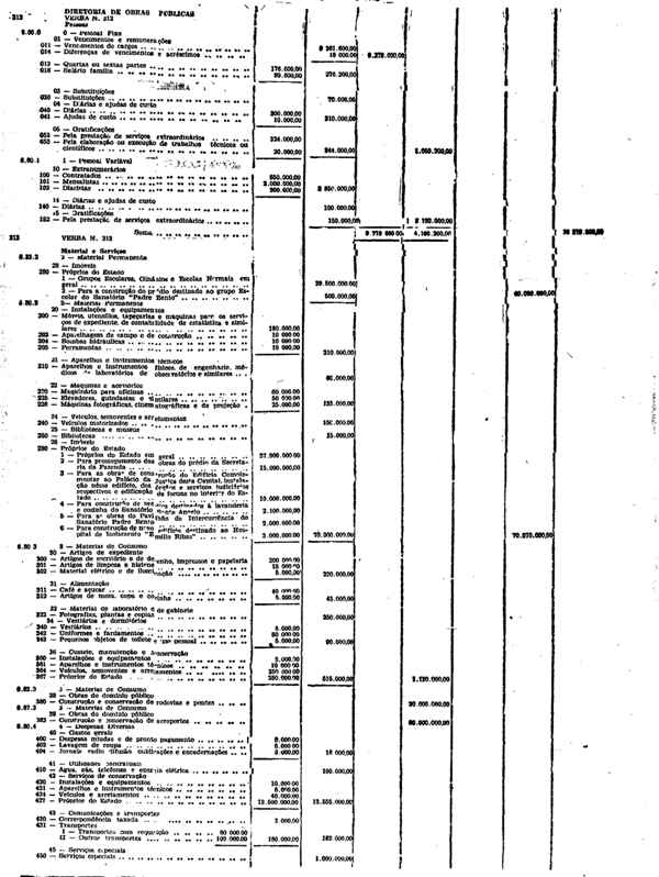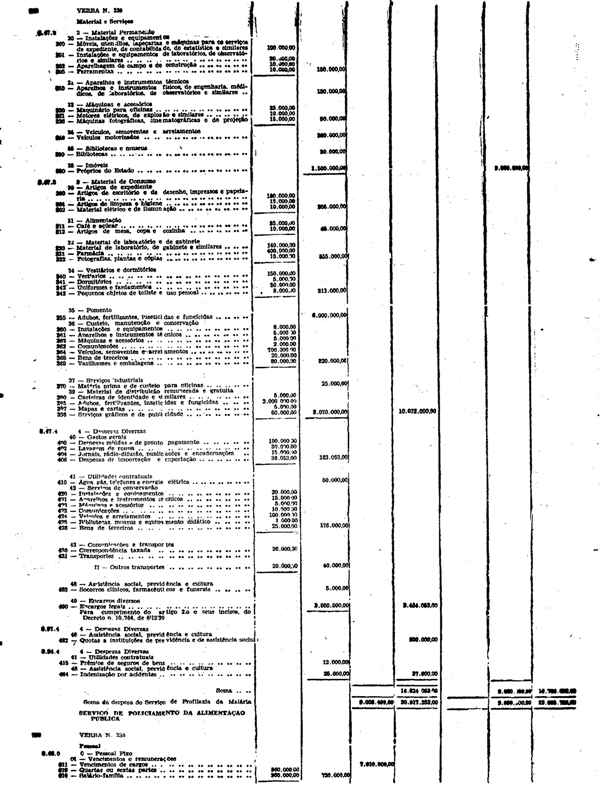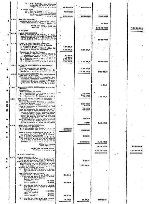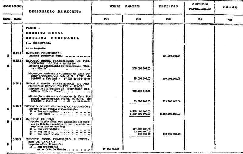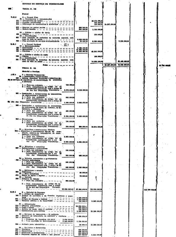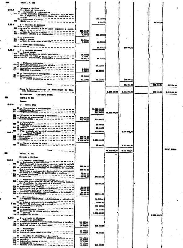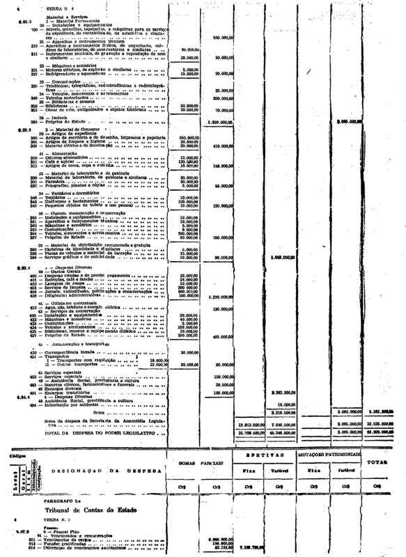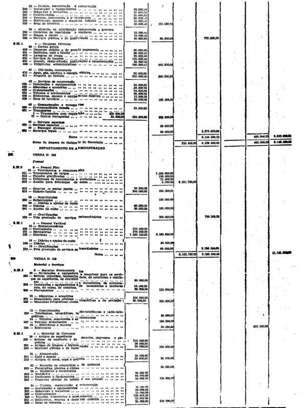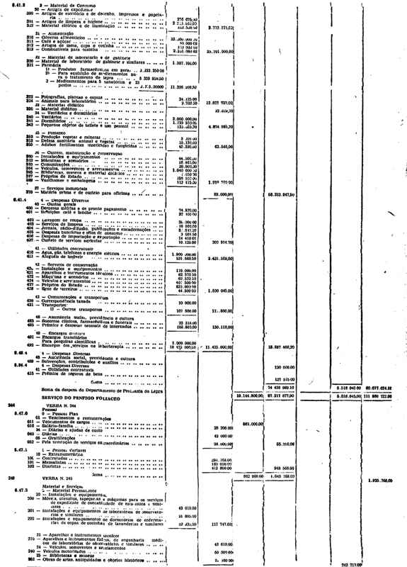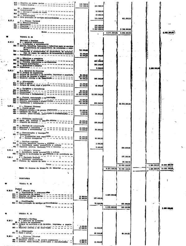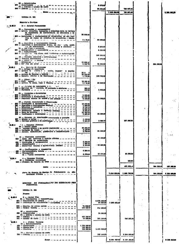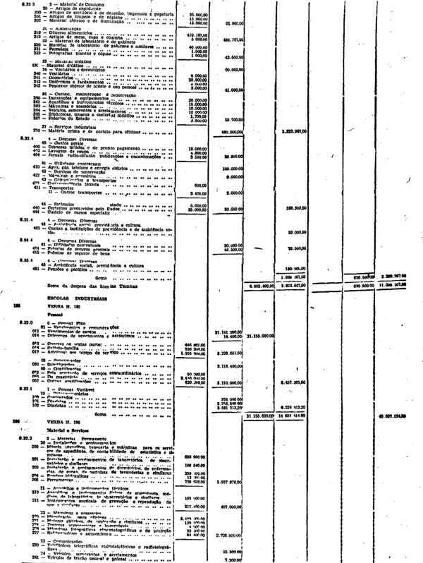 Novembro de 1951, a discriminação da Receita e da Despesa