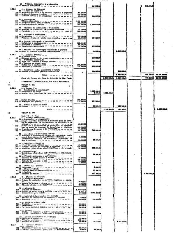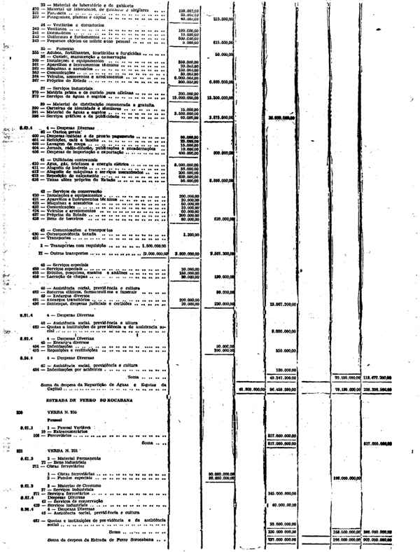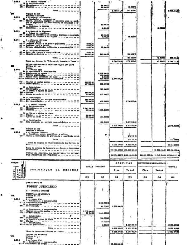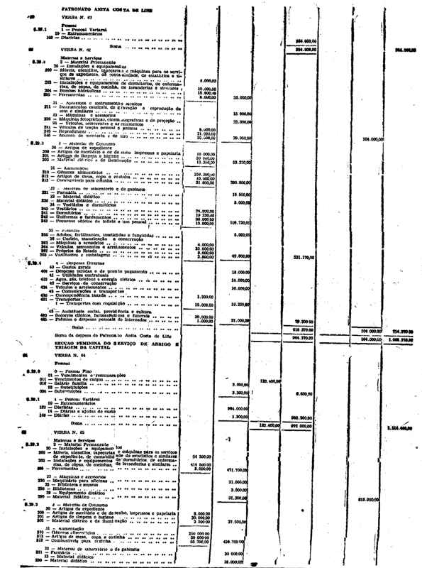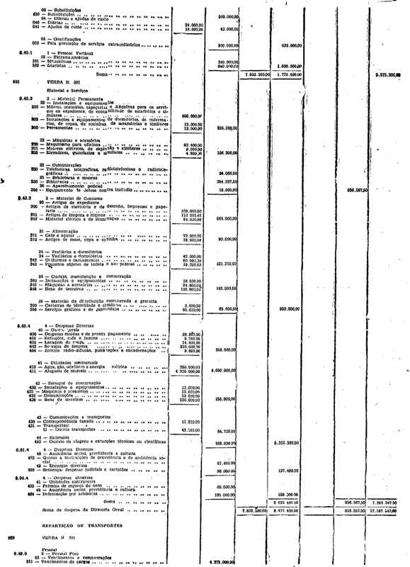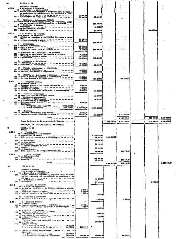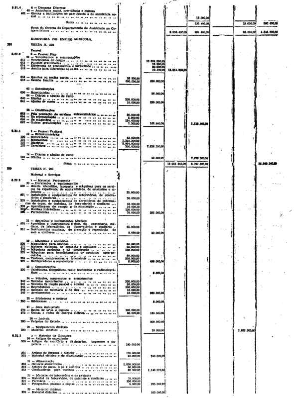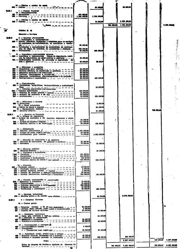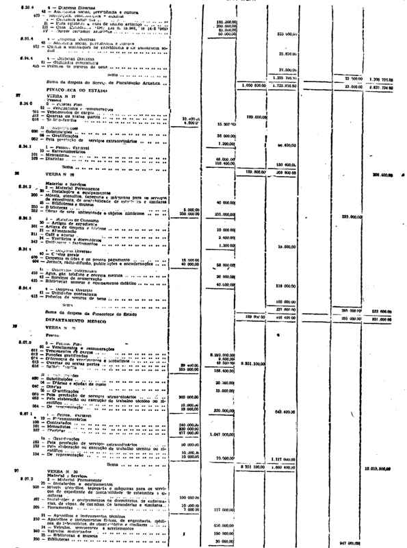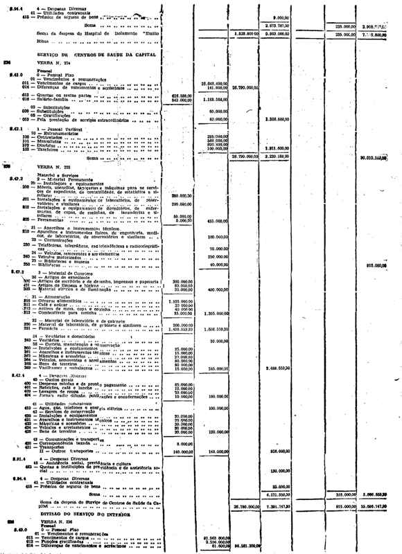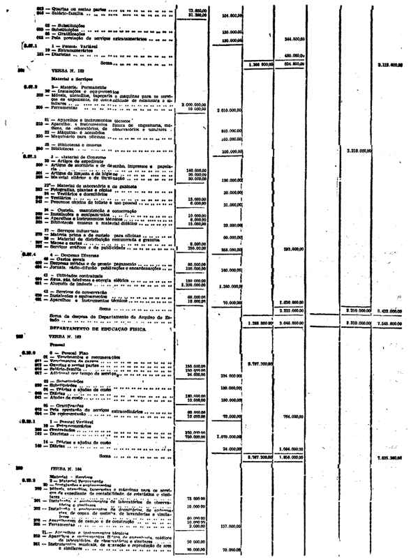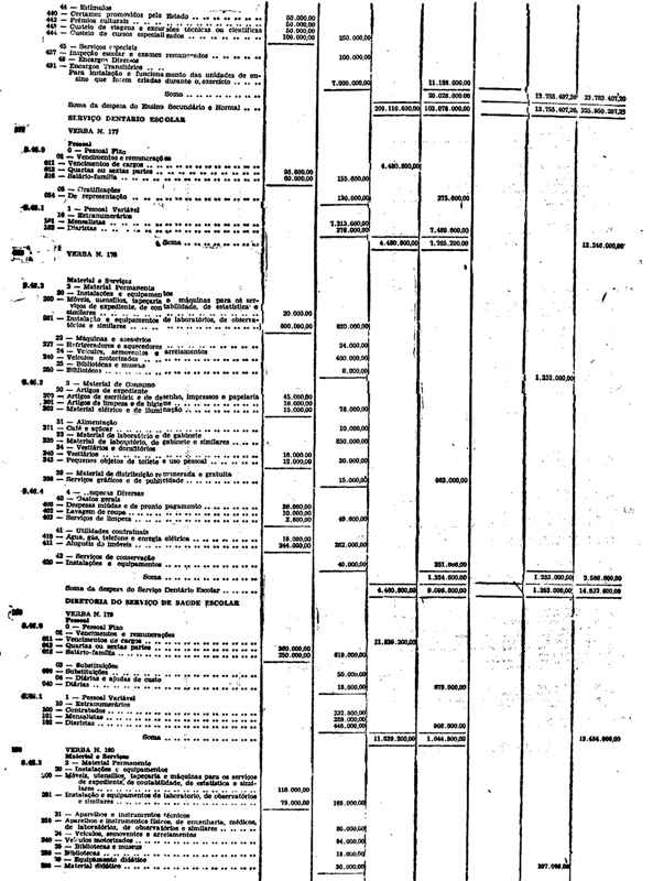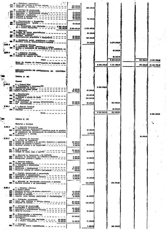 Novembro de 1951, a discriminação da Receita e da Despesa