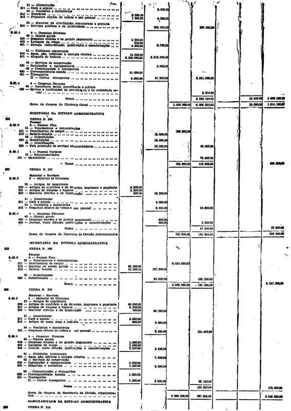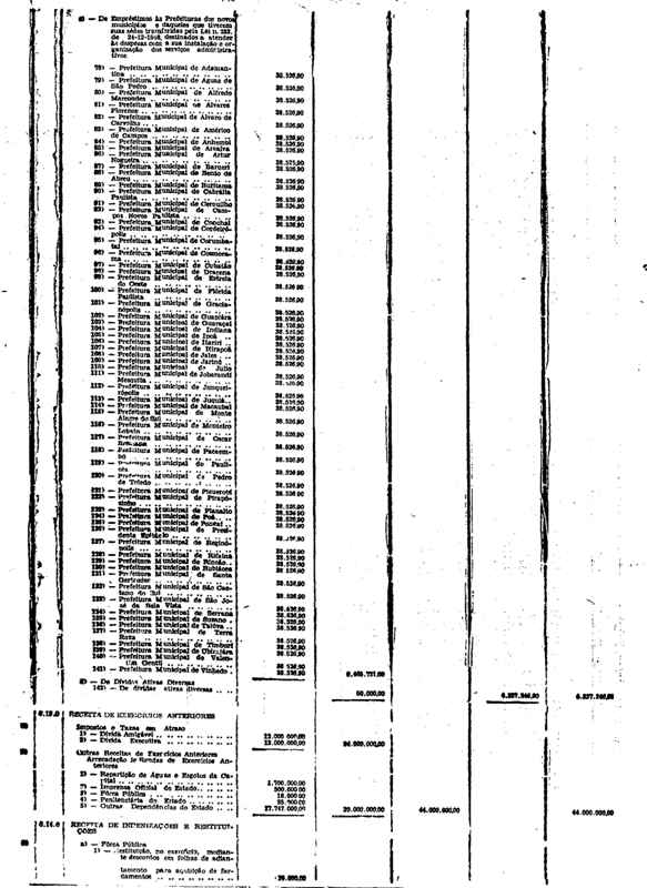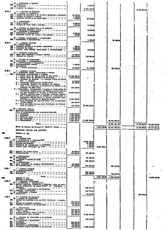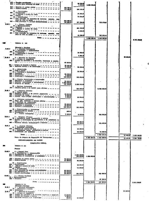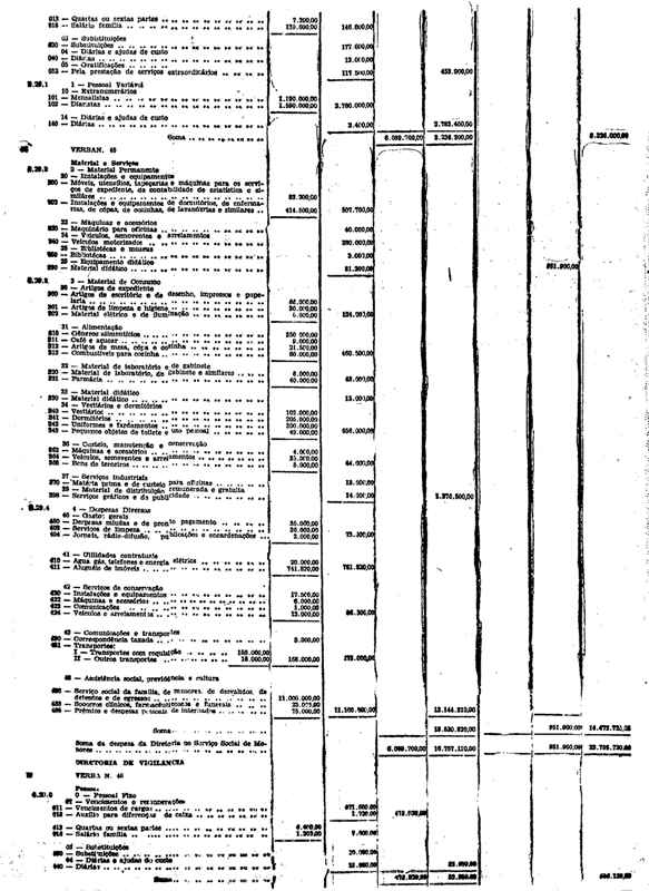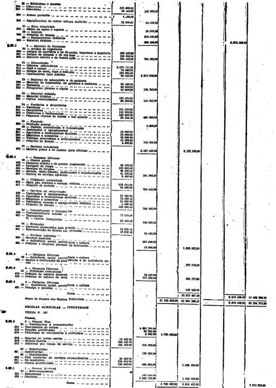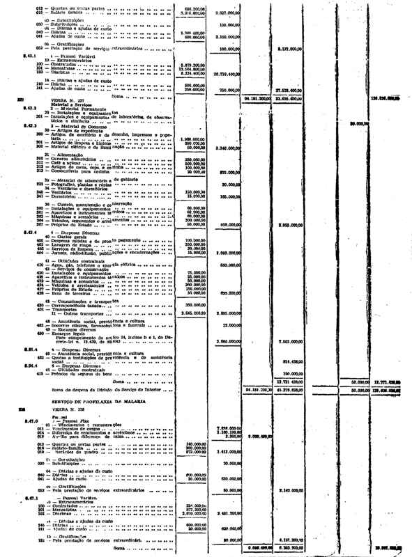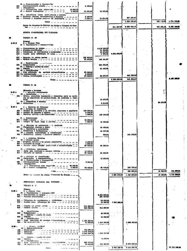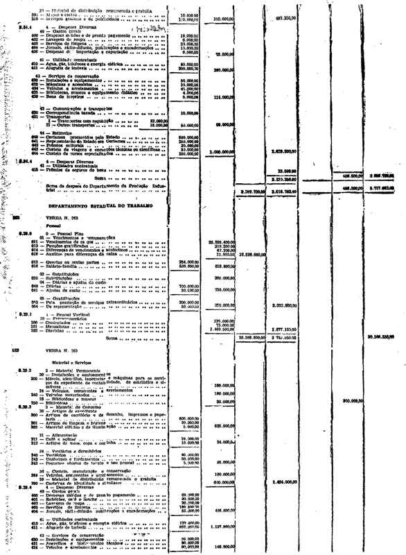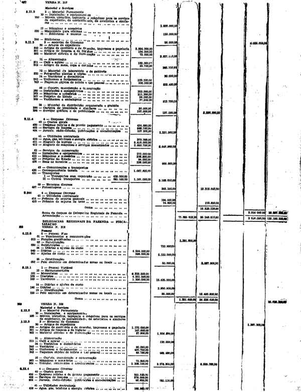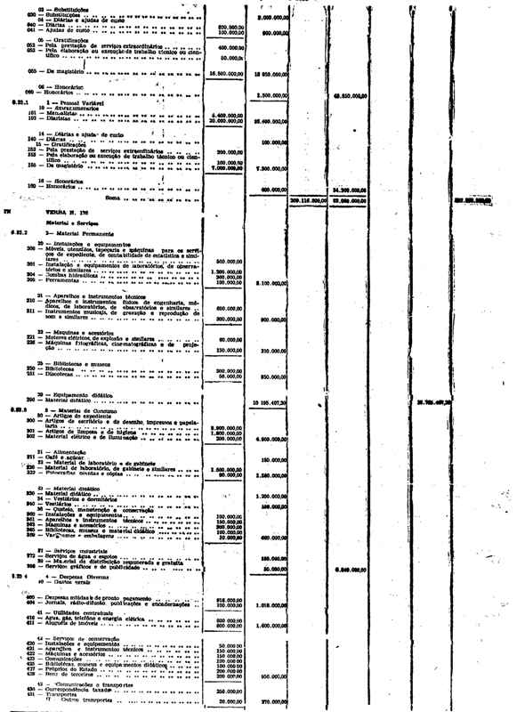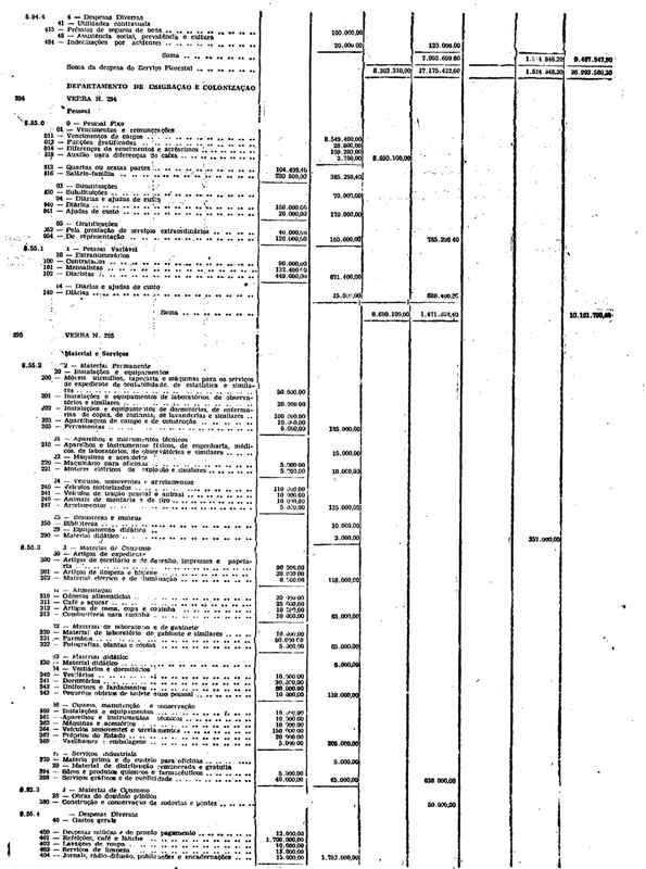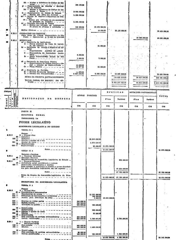 Novembro de 1951, a discriminação da Receita e da Despesa