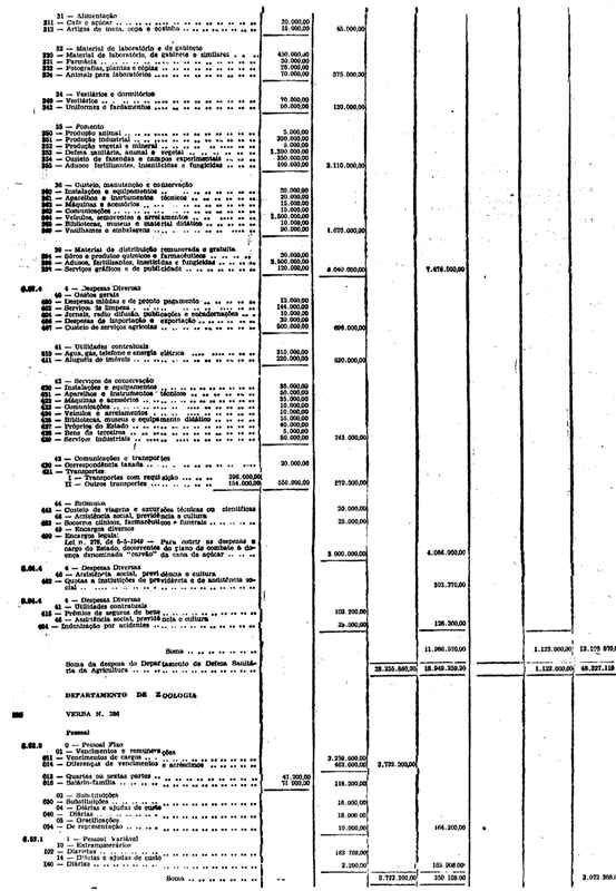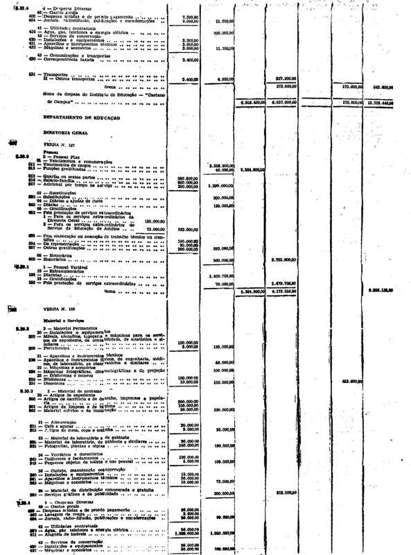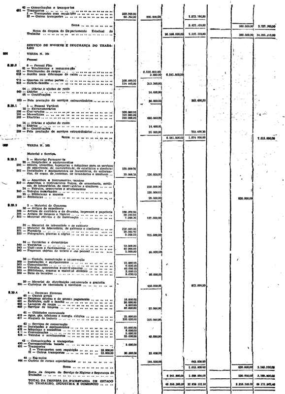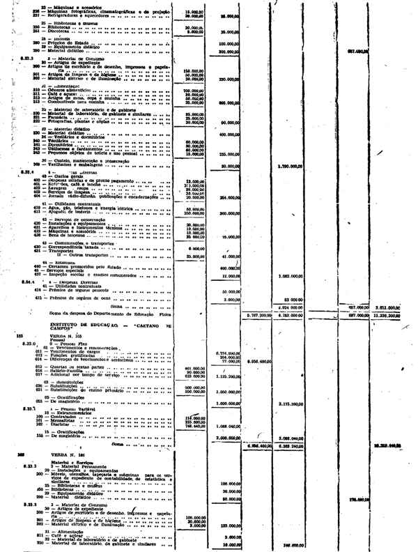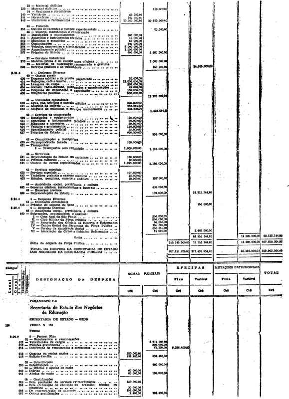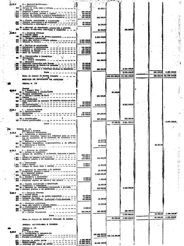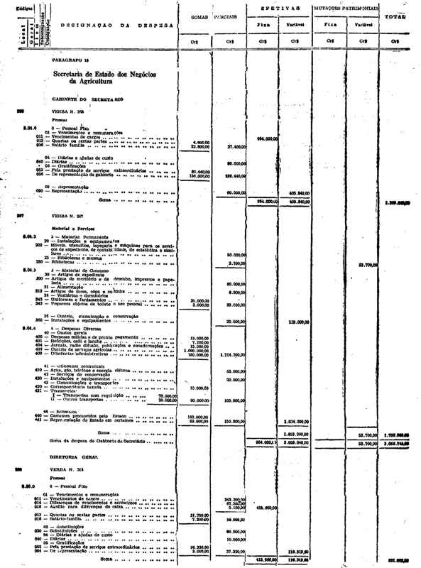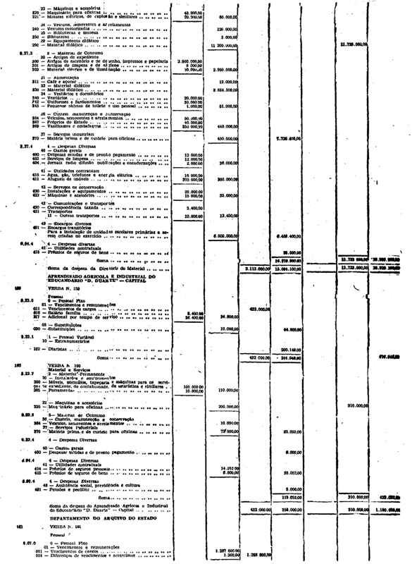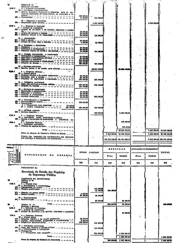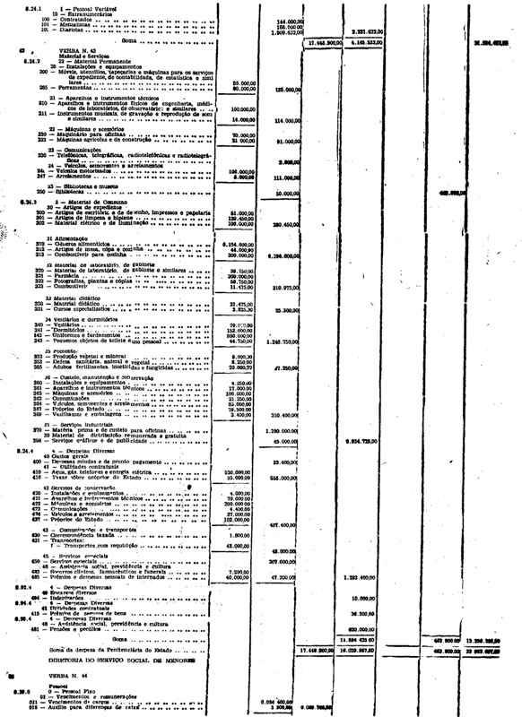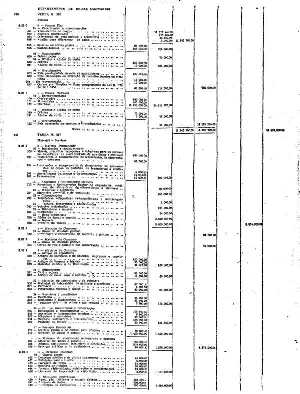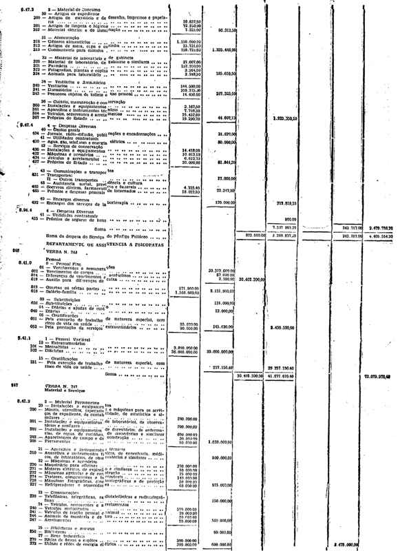 Novembro de 1951, a discriminação da Receita e da Despesa