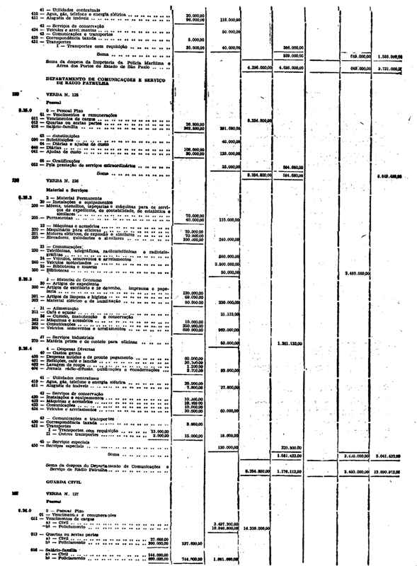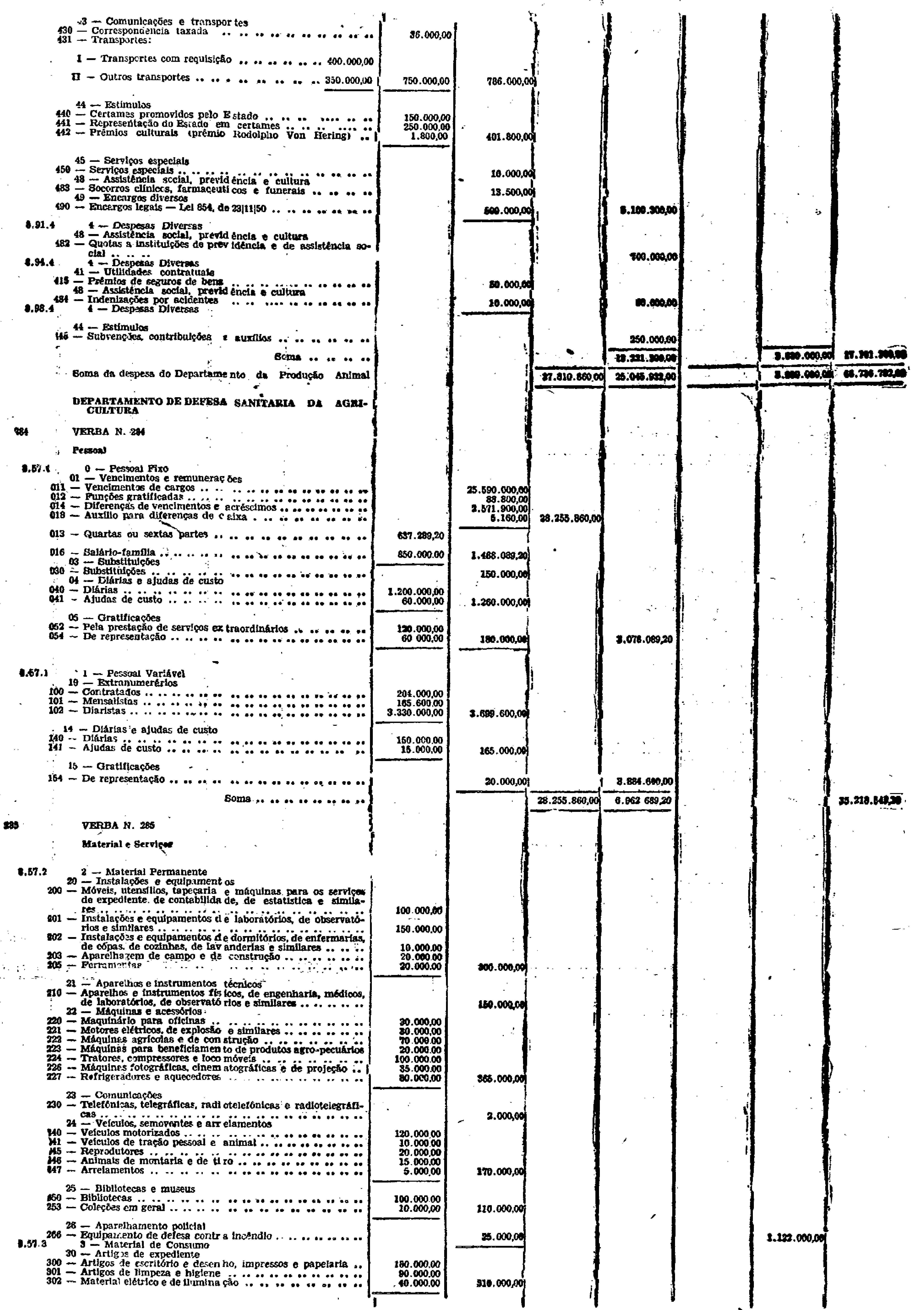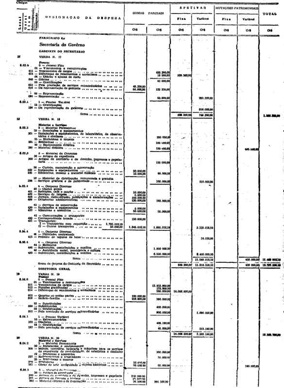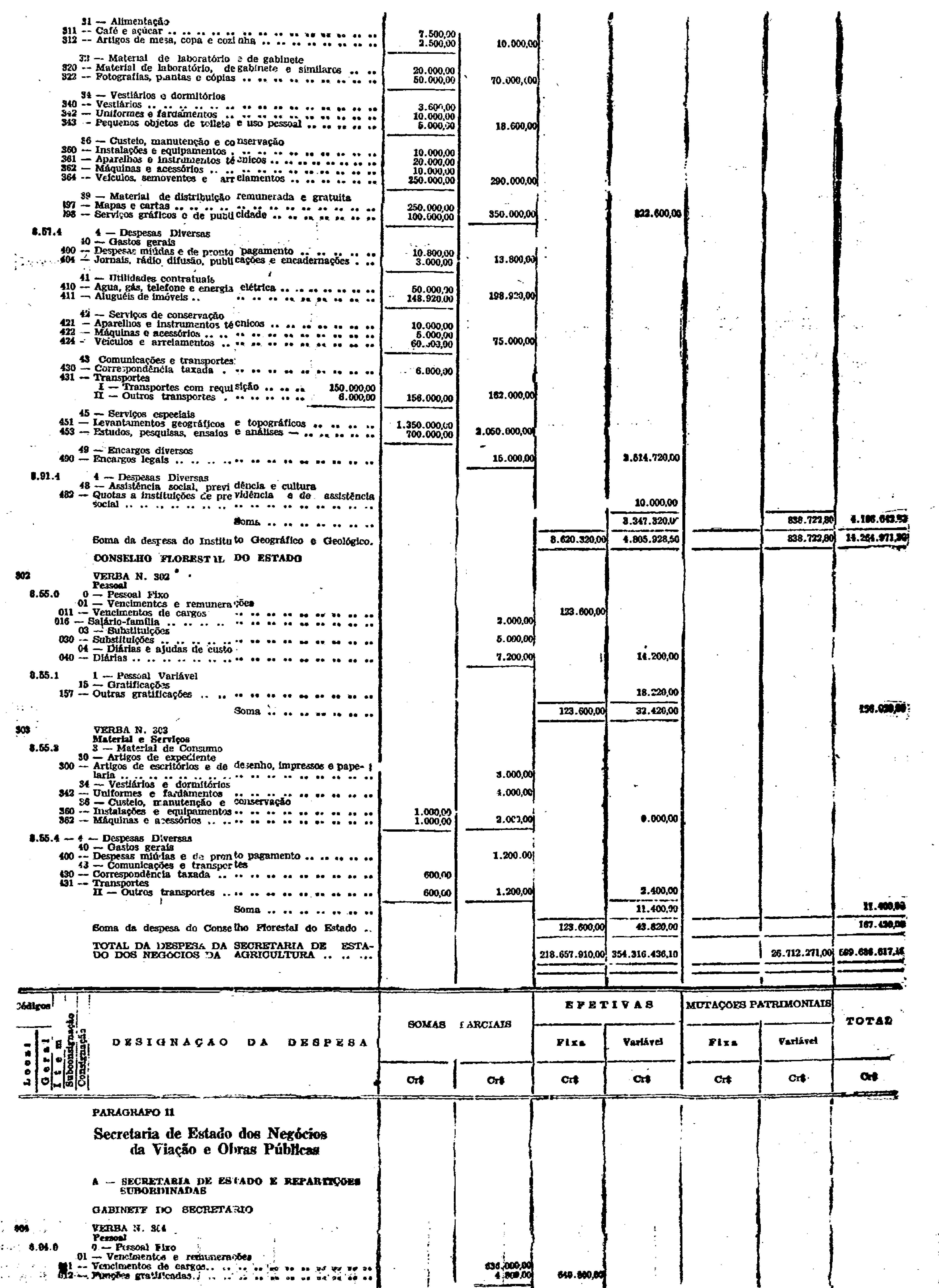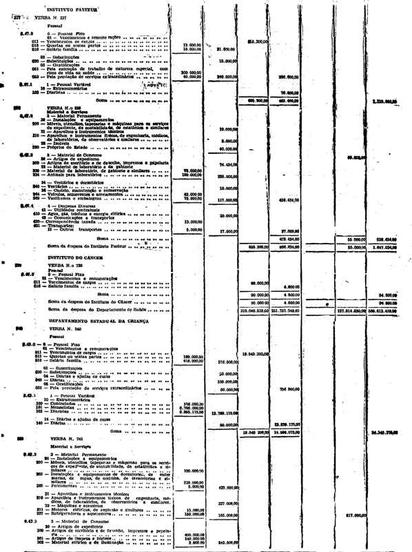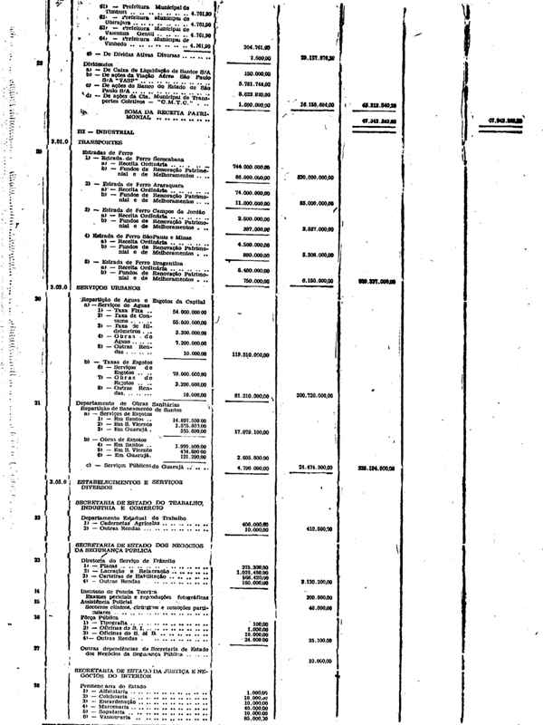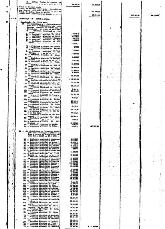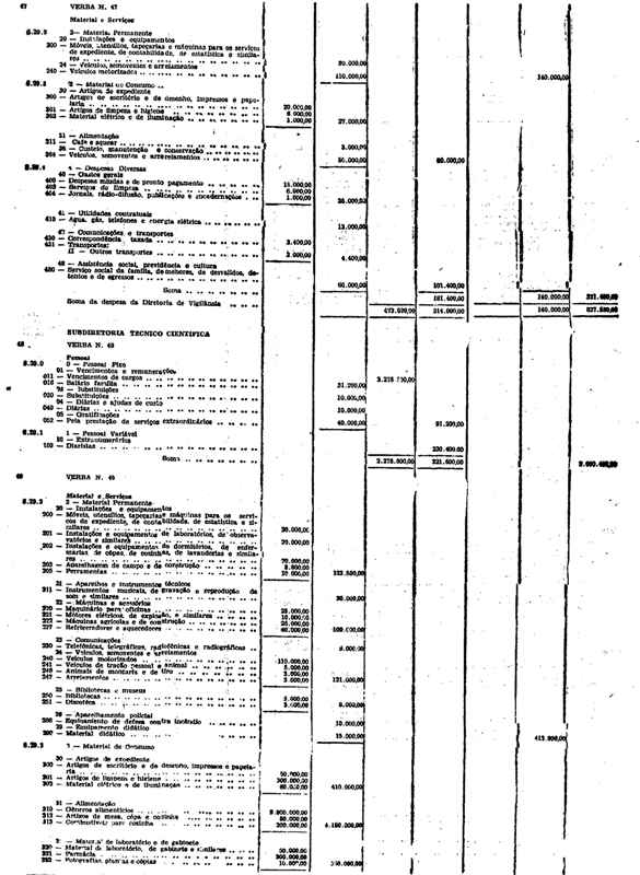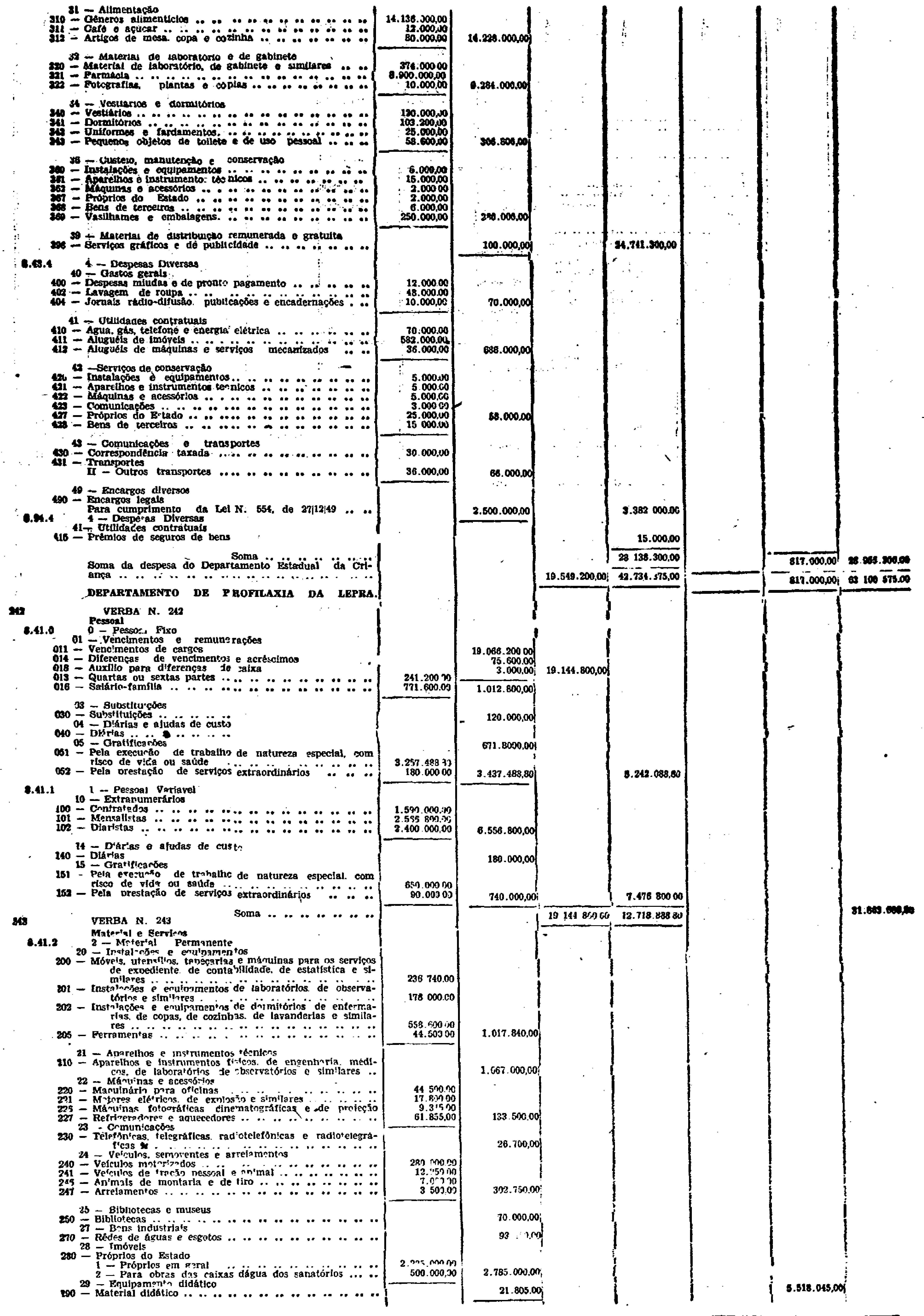 Novembro de 1951, a discriminação da Receita e da Despesa