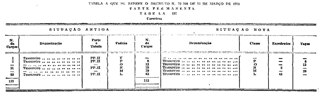 Permanente do Quadro da C. E. E. S. P. a carreira de Tesoureiro,