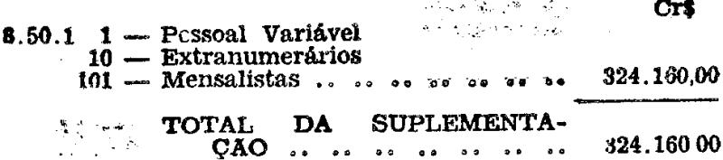 cruzeiros), a dotação do orçamento vigente, abaixo