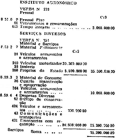 milhões e duzentos mil cruzeiros) suplementar às seguintes verbas