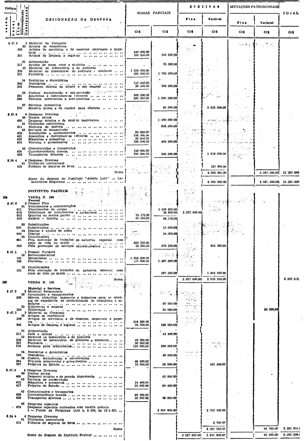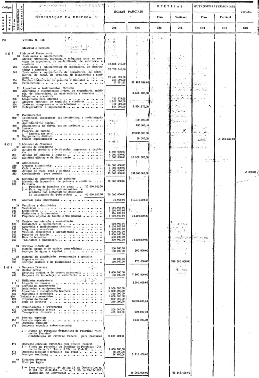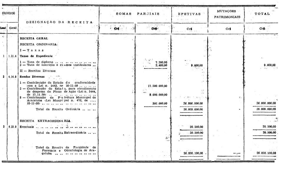 Dispõe que se observe, na execução da Lei n. 5.443, de 16 de novembro de 1959, a discriminação da Receita e Despesa constante das tabelas anexas.
