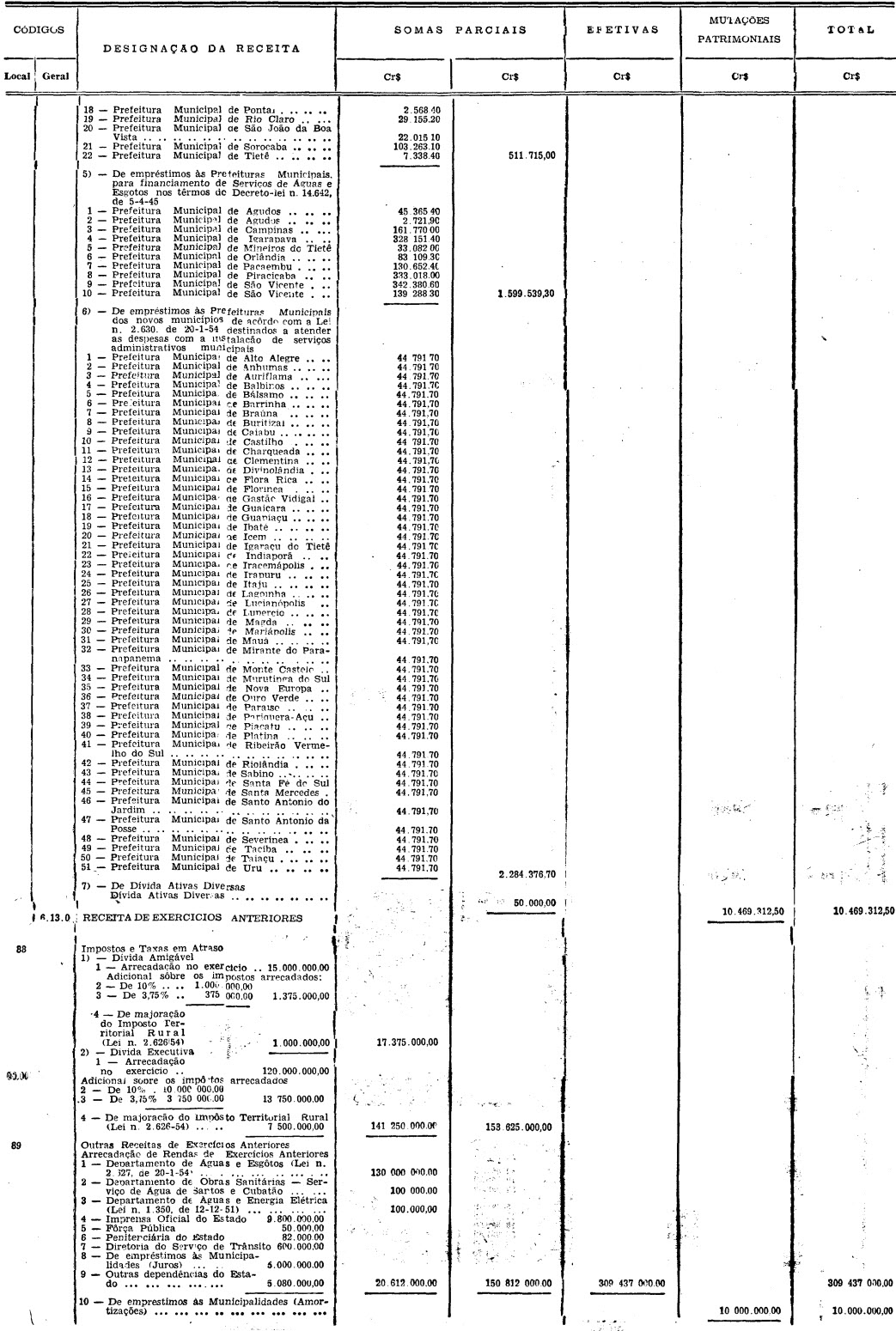 1) - Prêmio " Governador do Estado etc. (4.ª coluna) 3.050.000,00