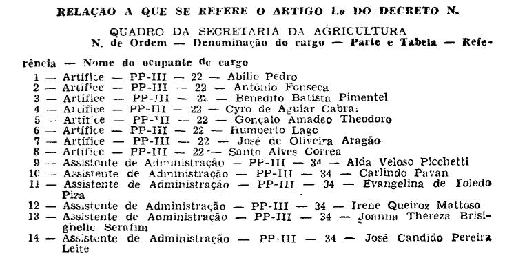 "RELAÇÃO A QUE SE REFERE O ARTIGO 1.° DO DECRETO N. ;