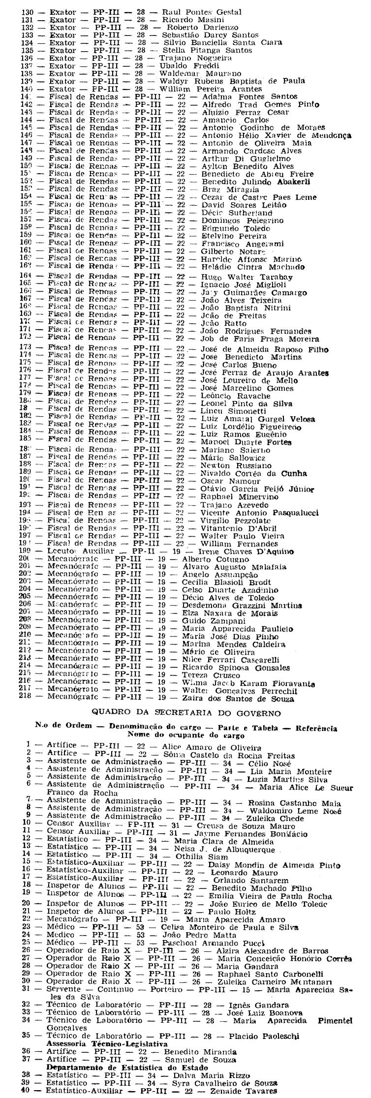 respectivos Quatros de Secretários de Estado,";