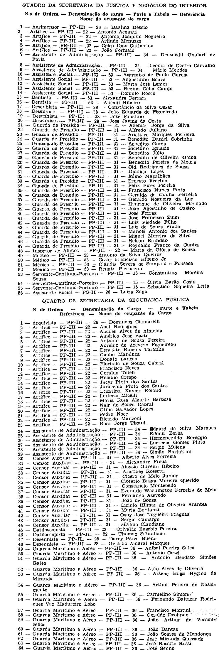 respecivos Quadros de Secretarias de Estado,"