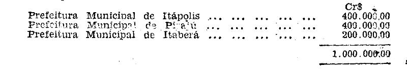 financeiros no total de Cr$ 1.000.000,00 (hum milhão de