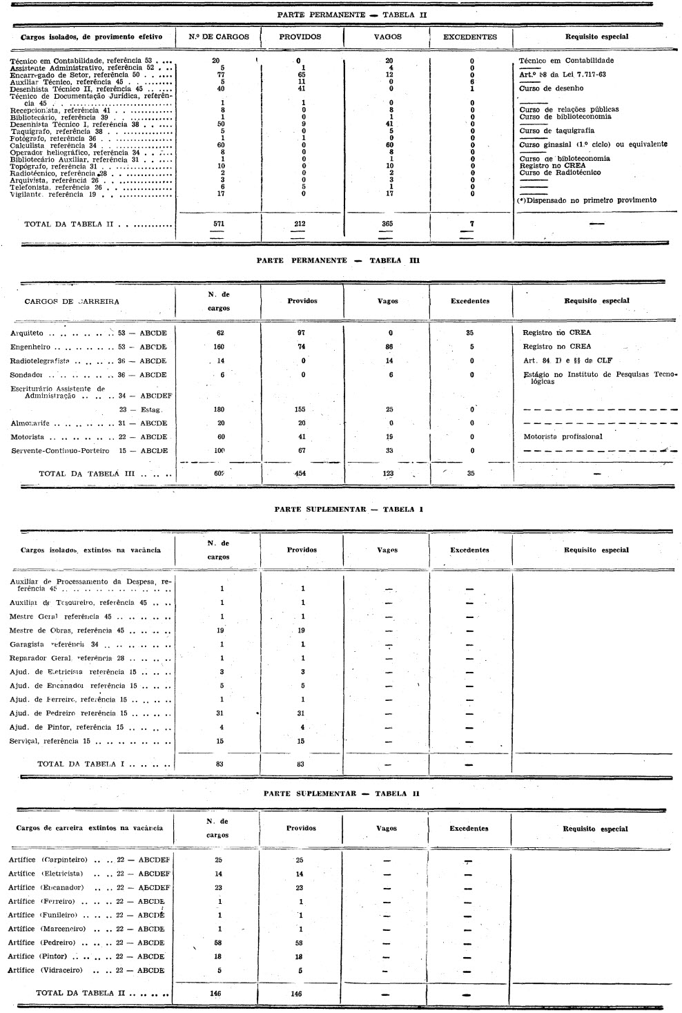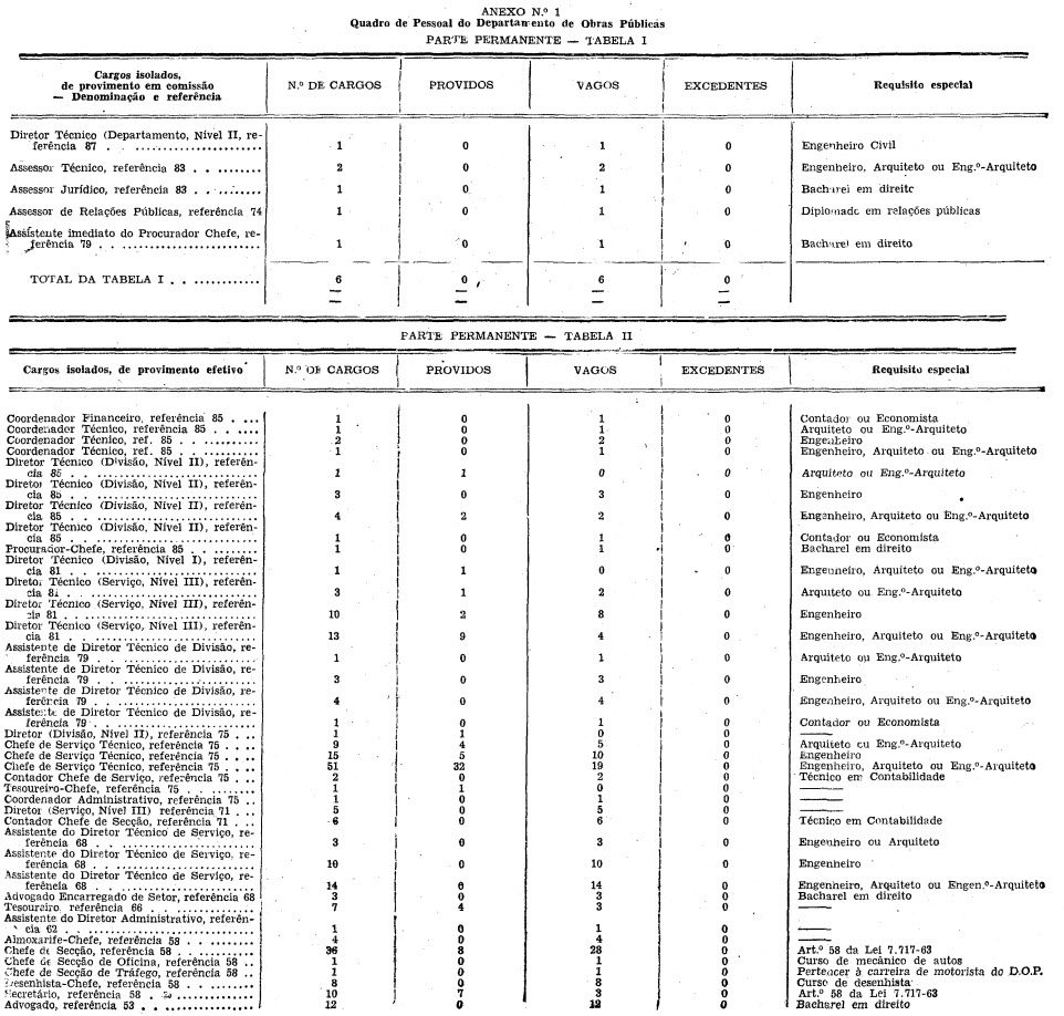 9.296, de 14 de abril de 1966, é composto dos cargos isolados e de