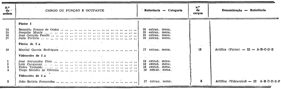 Artigo 1.º - O Quadro de funcionários do Departamento