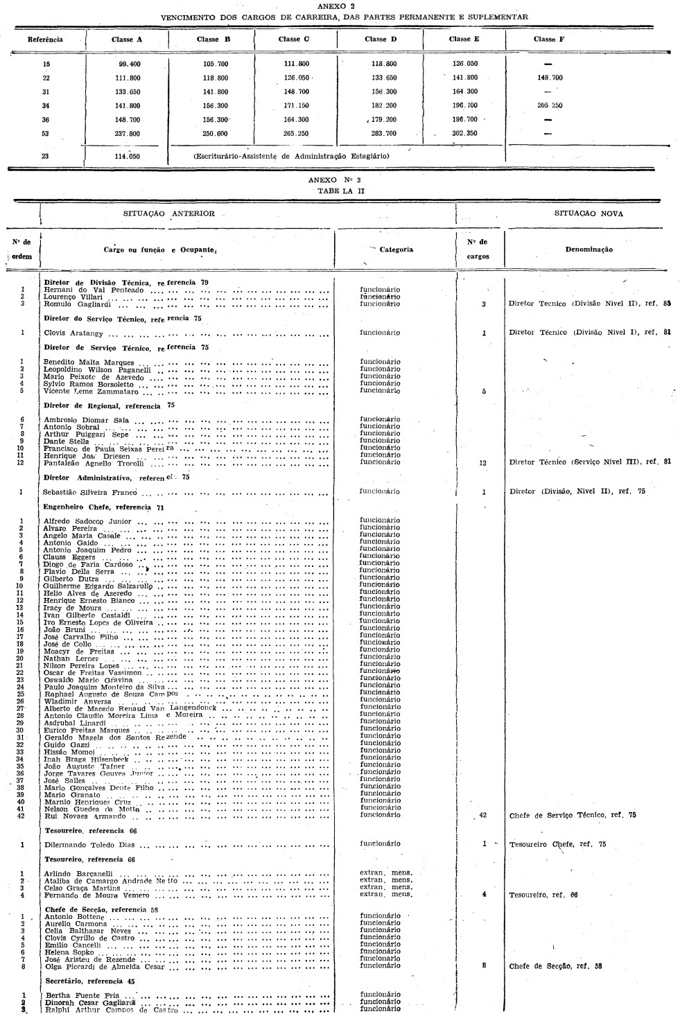 § 2.º - Os vencimentos atribuidos às respectivas classes dos cargos de carreira são os constantes do Anexo n. 2.