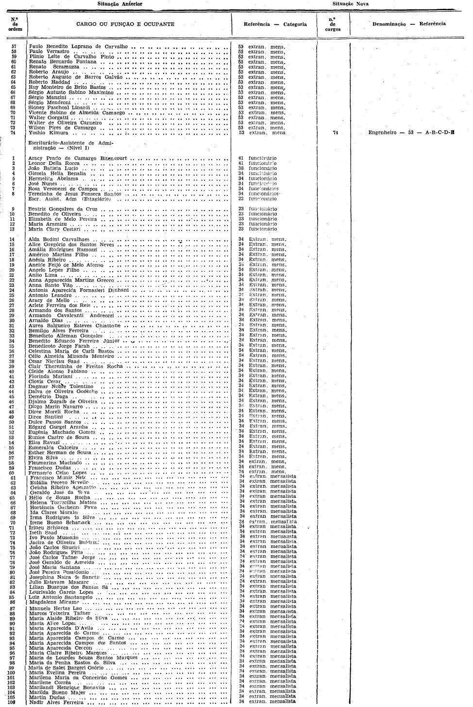 Artigo 34 - Aos ocupantes de cargos da carreira de Arquiteto e