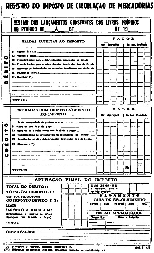 Mod. 1 - RIC: Na fôlha para "Anotações,