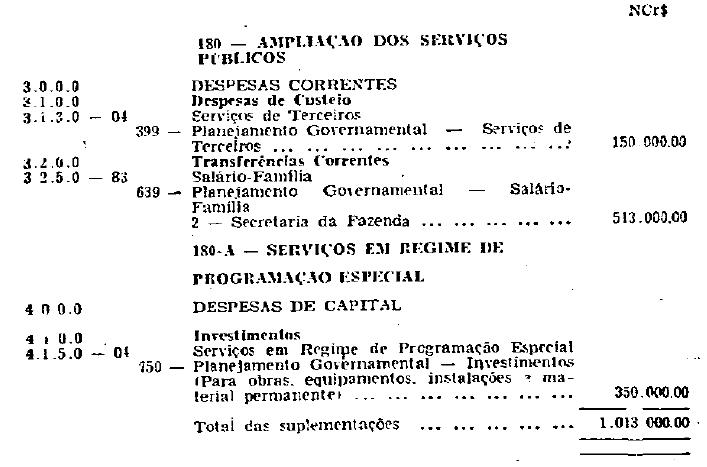 NCr$ 1.013.000,00 (um milhão e treze mil cruzeiros novos),