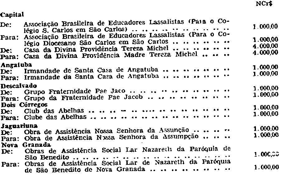 abaixo relacionadas, beneficiadas pelo Decreto n. 50.135 de 2 de agôsto