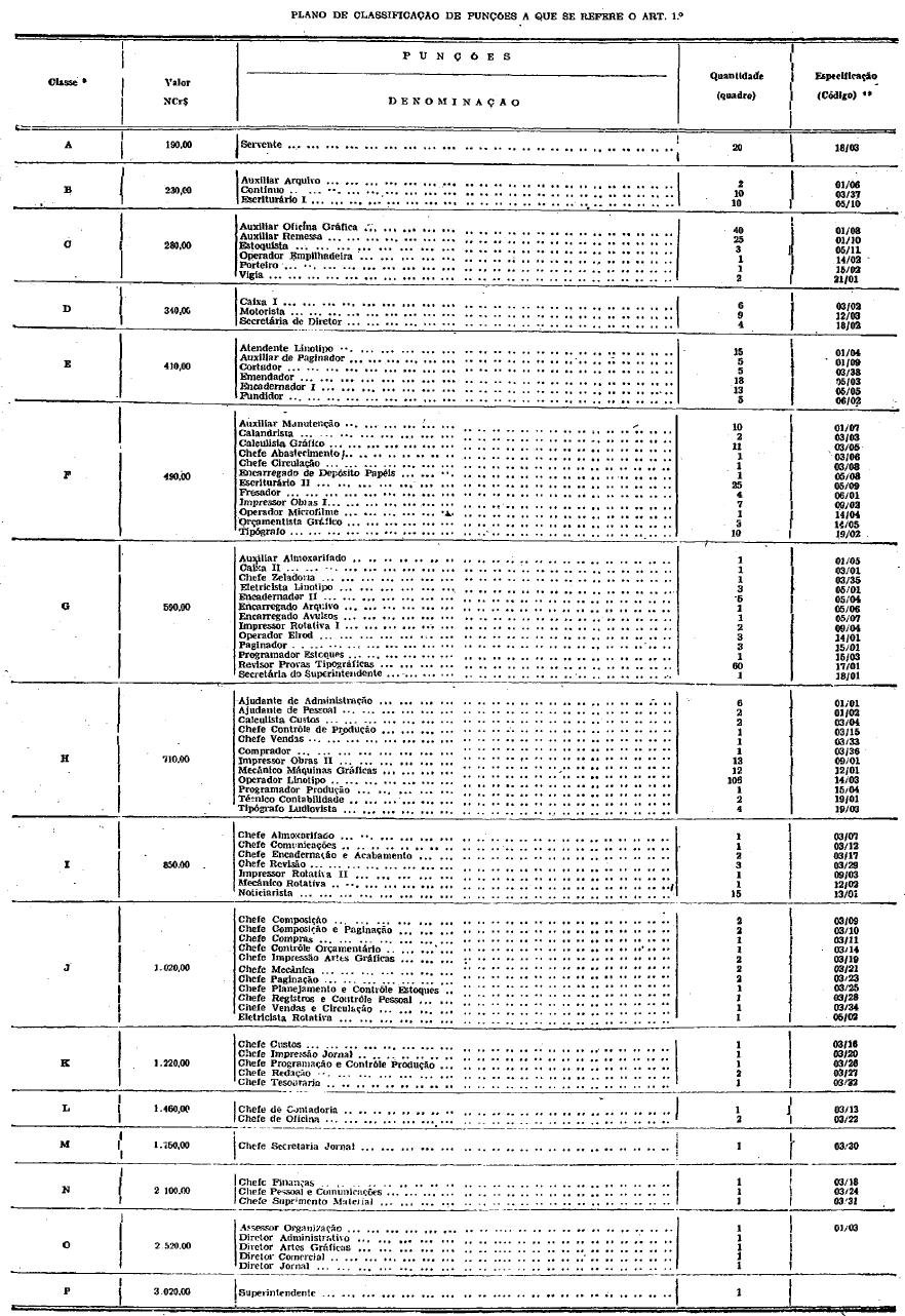 Artigo 9.º - O Superintendente da IOE fixará "sentada" ao Operador de Linotipo, quando em exercício na Oficina II.