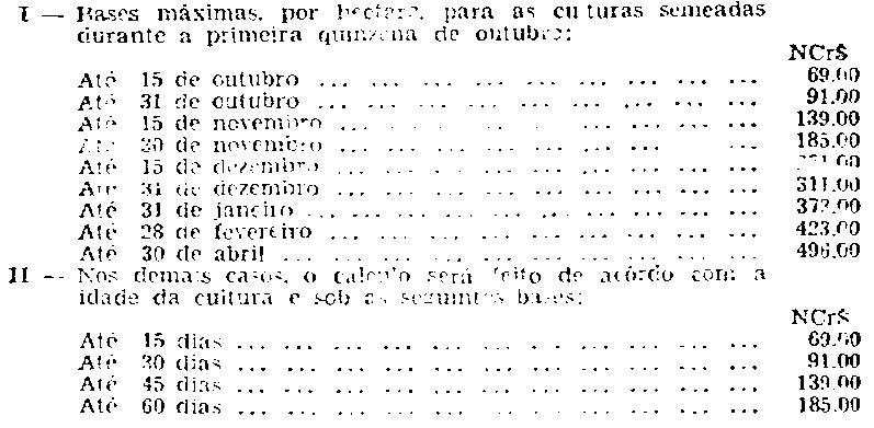 de seguro contra o granizo por saca de 30 (trinta) quilos de sementes