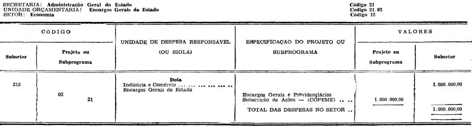 a Demonstração da Despesa por Projetos ou Subprogramas