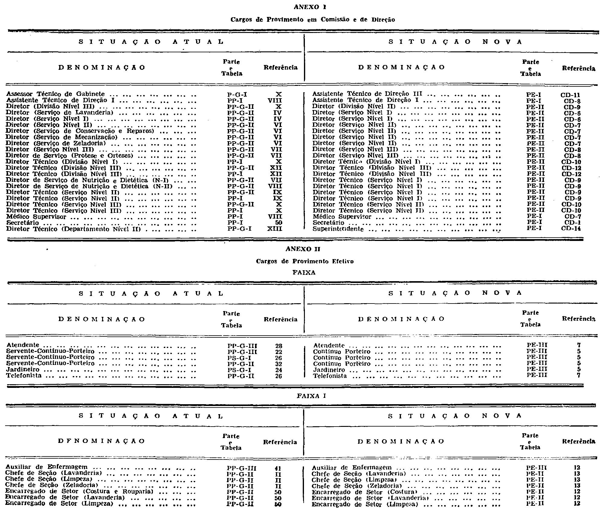 Artigo 6.º - Os cargos constantes dos Anexos I e II serão