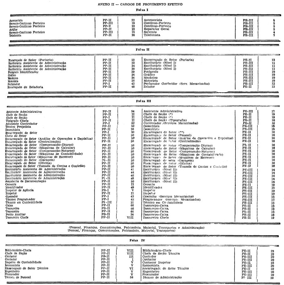 ocupantes efetivos de cargos que, por êste decreto, passam a ser